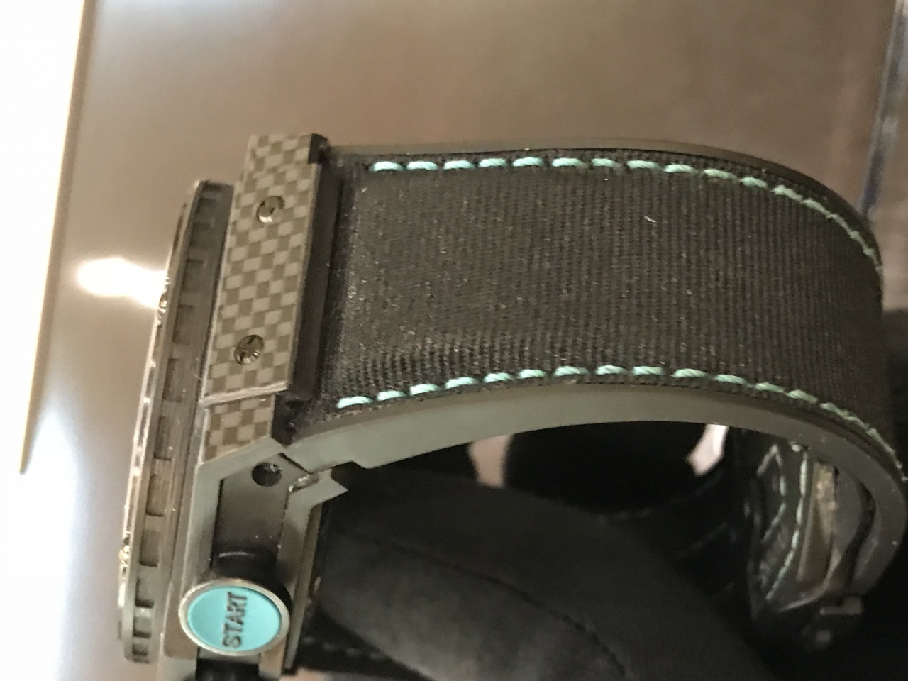 Она выпущена в честь гоночной трассы Гран-при Абу-Даби - Yas Marina Circuit. Карбоновый корпус, диаметром 48 мм, водонепроницаемый до 100 метров. Фиксированный безель из карбона и черной керамики, с мелкими декоративными отверстиями, на шести винтах.