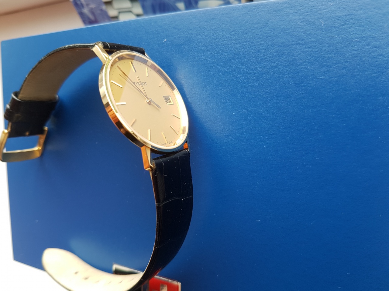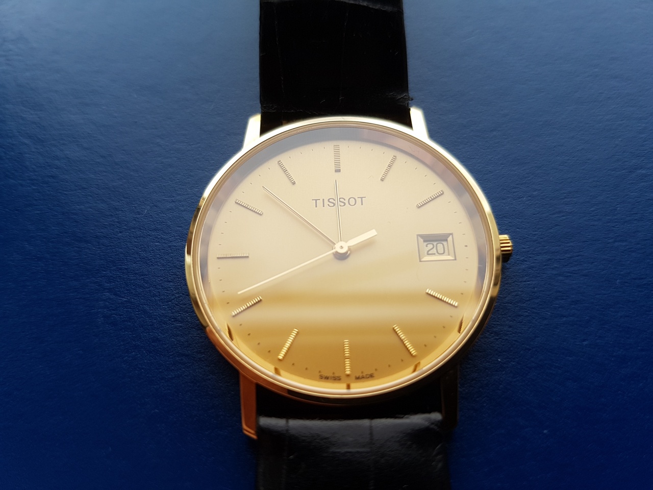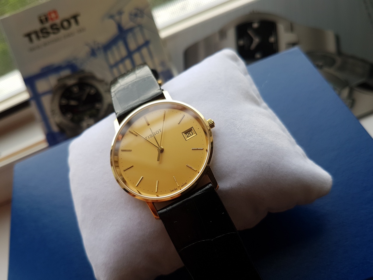 Стрелки, метки(рифленые, красиво играют на солнце) и циферблат цвета золото.