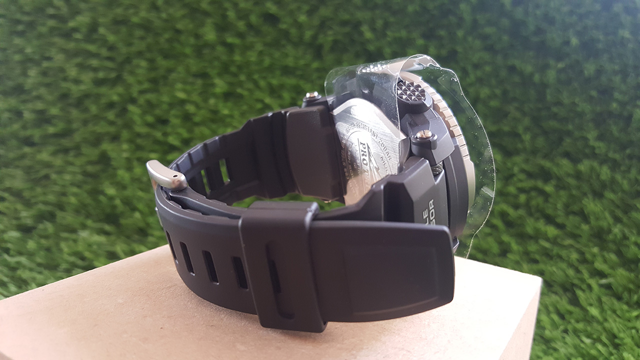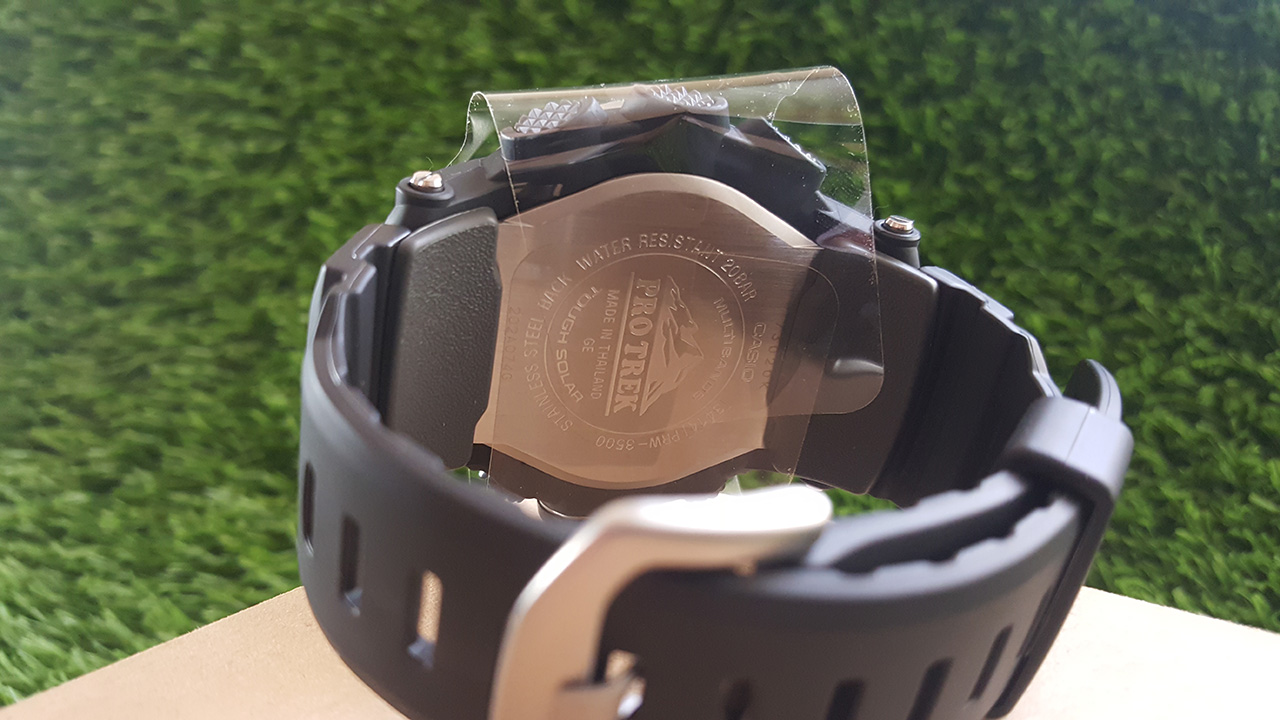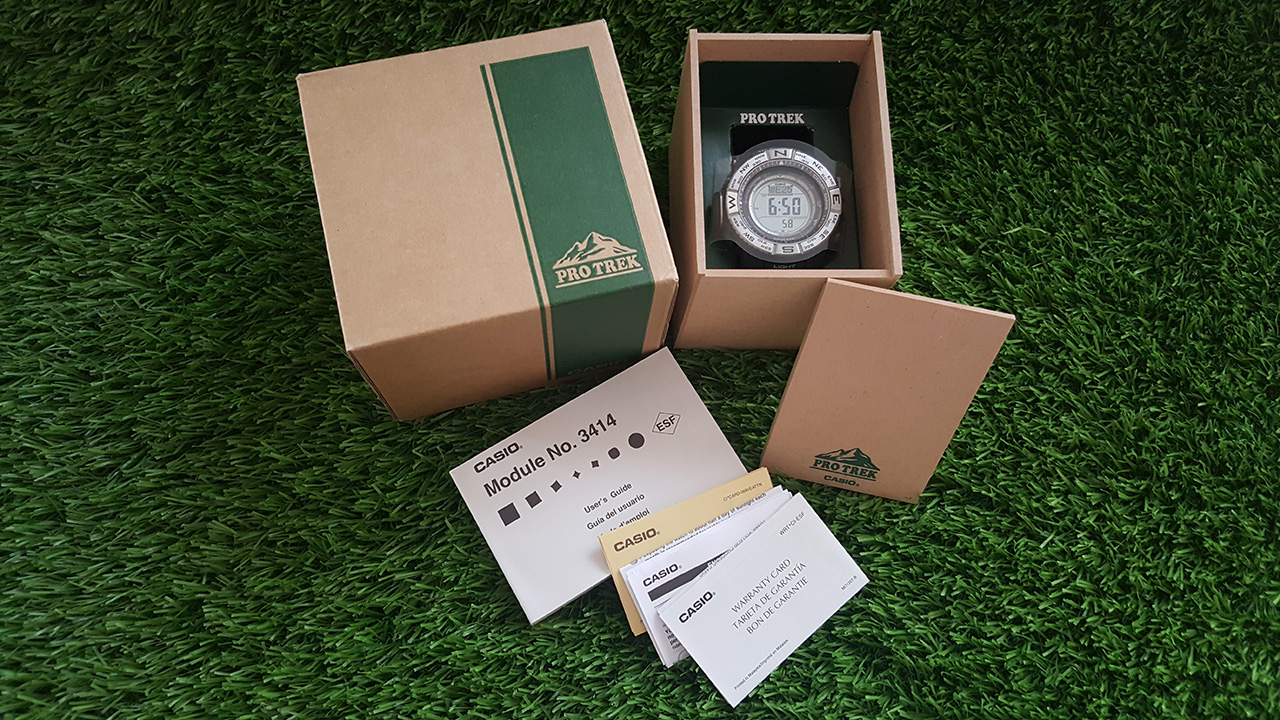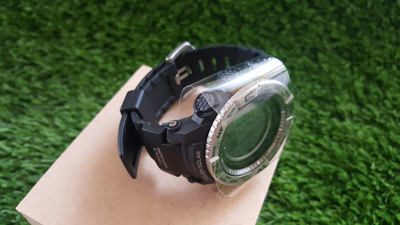 Protrek. Циферблат подсвечивается ярким светодиодом, при недостаточном освещении во время поворота запястья в сторону лица подсветка включается автоматически. Питание от солнечной энергии, индикатор заряда батареи. Модуль часов рассчитан на работу при низких температурах. Функция автоматического сохранения энергии. Время работы аккумулятора без подзарядки - 7 месяцев, при включенной функции сохранения энергии - 23 месяца. Коррекция текущего времени радиосигналом на территории почти всей Европы, США, Японии и Китая. Встроенный цифровой компас. Высотомер - встроенный датчик барометрического давления с возможностью вывода результатов в единицах высоты над уровнем моря (от -700 до 10000 метров). Барометр - измерение атмосферного давления от 260 до 1100 гПа (от 195 до 825 мм рт. ст.). Встроенный датчик температуры от -10° до +60°С с точностью 0,1°C. Время восхода и захода Солнца. Секундомер с точностью показаний 1/10с и временем измерения 1000ч. Таймер обратного отсчета от 1мин до 24ч. Мировое время. 12-ти и 24-х часовой формат времени. Функция отключения/включения звука. Стальной вращающийся безель.
