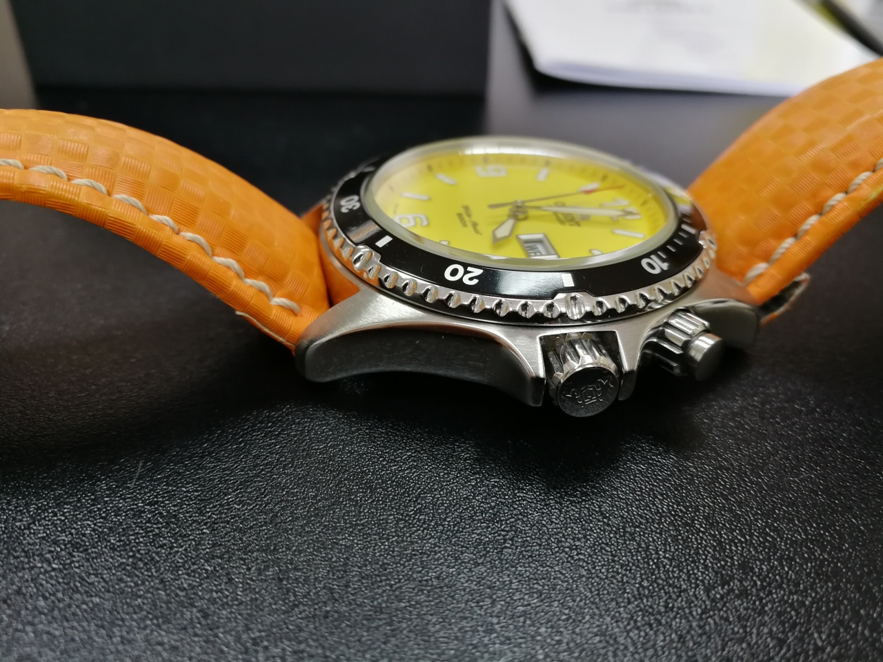 Продаю очень редкие, практически не встречающиеся Ориент мако желтой расцветки. Часы в прекрасном состоянии, практически не носились. На ремне хирш карбон. Крайние звенья браслета в наличии. Комплектность часов на фото. Документы, коробка в наличии. Возможен пересыл. Небольшой экскурс по ссылке, описание модели.