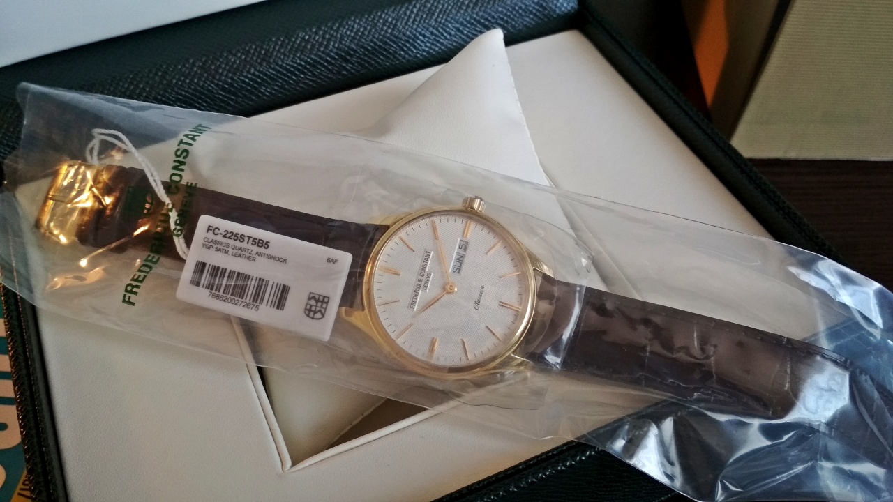 В продаже строгие мужские часы с классическими чертами от Frederique Constant. Циферблат декорирован узором Clou de Paris. Модель мужских часов коллекции Frederique Constant Classics имеет корпус выполненный из нержавеющей стали с позолотой, защищенным сапфировым стеклом с антибликом. Кварцевый механизм FC-225 обеспечит точность хода, а дополнительные функции: дата, день недели придают удобство. Водозащита: 50м.