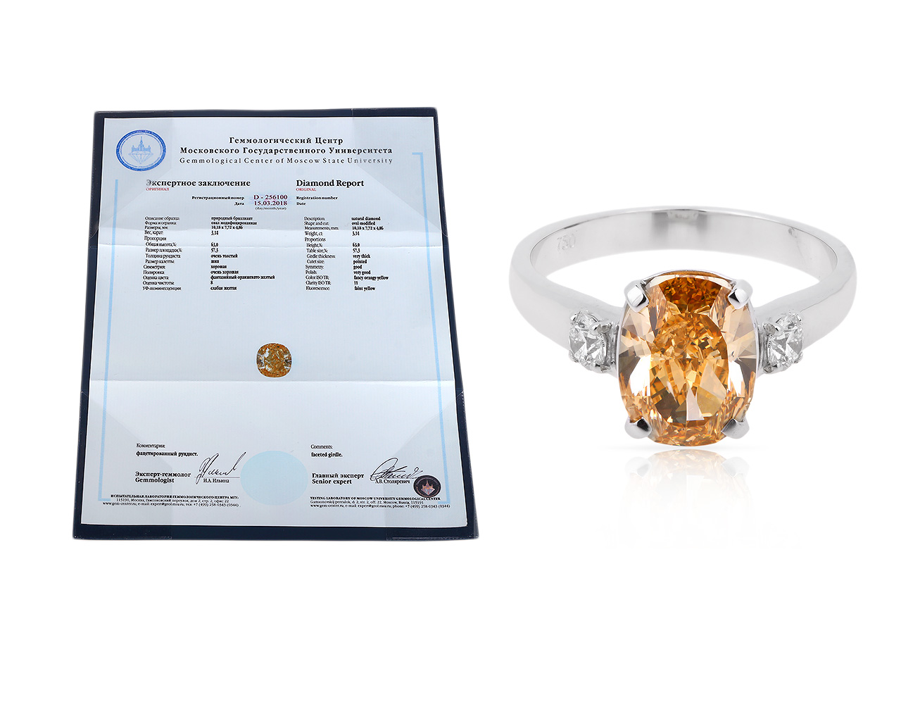Золотое кольцо с бриллиантами 3.44ct Сертификат МГУ
