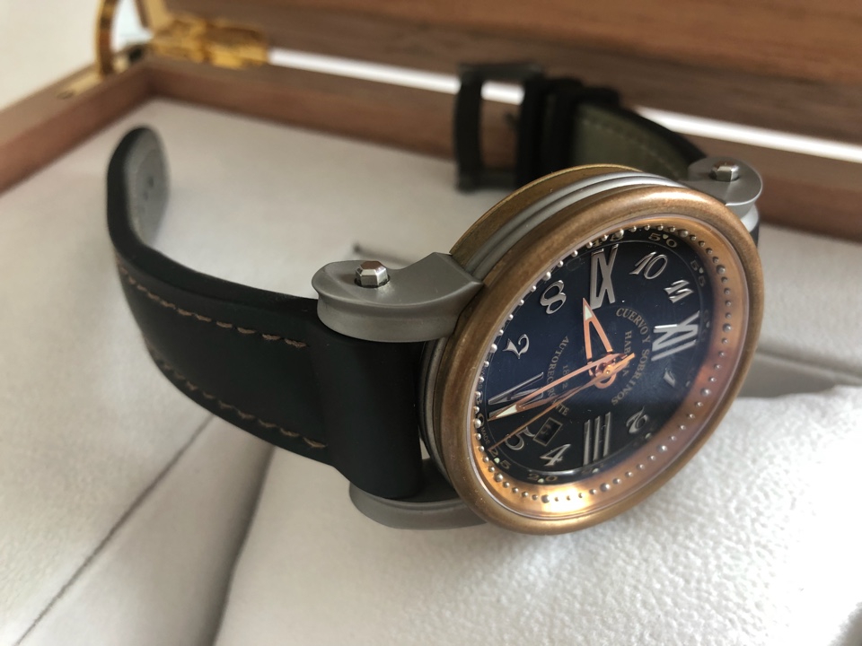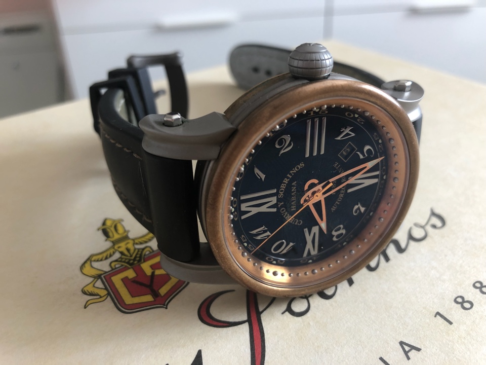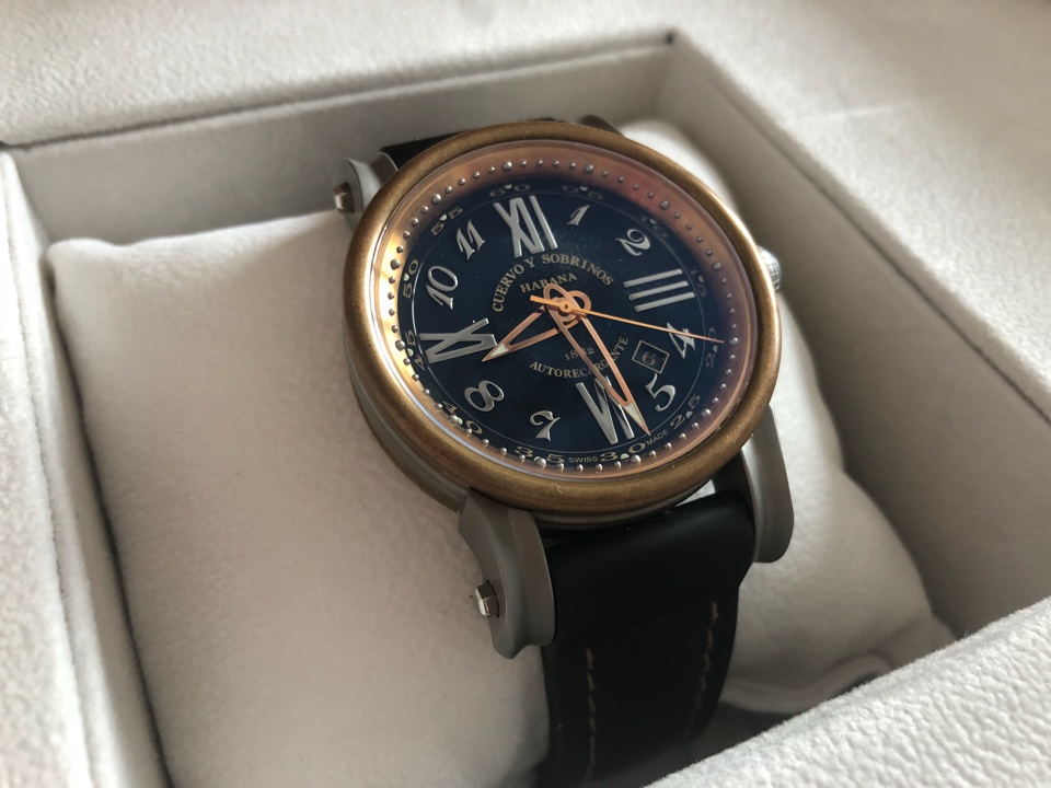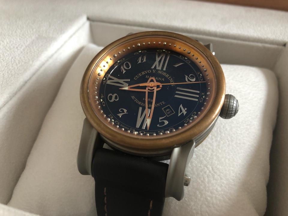 В связи с оптимизацией часового сета расстаюсь с редкими и безумно красивыми часами - Cuervo y sobrinos pirata. Словами не описать, фото все не передают, кто не видел конечно лучше смотреть вживую. Найти в продаже практически нереально, на всем известном ресурсе есть одни в заметно худшем состоянии и не неродном ремне. Свои искал год, нашел в Люксембурге, купил новыми, носил суммарно 2-3 недели. Состояние идеальное ( подарочное ), комплект полный. Коробка впечаляет, не помню даже с чем это можно сравнить... Причина продажи странная - гораздо более дорогие памы-брайты-омегу спокойно таскаю а эти ЖАЛКО ! Вот и лежат, а это неправильно. На обмен готов на крупные ( от 47мм ) часы неделового стиля. Юбоат Химера допустим, Омега ПРОплоф, Брайт для Бентли.... Кидайте варианты, только разумные по цене... Продажа по времени не ограничена, снижать цену не собираюсь, легкая коррекция по цене возможна только в личке. Как говорят - отдам только в хорошие руки. Всем удачи!
