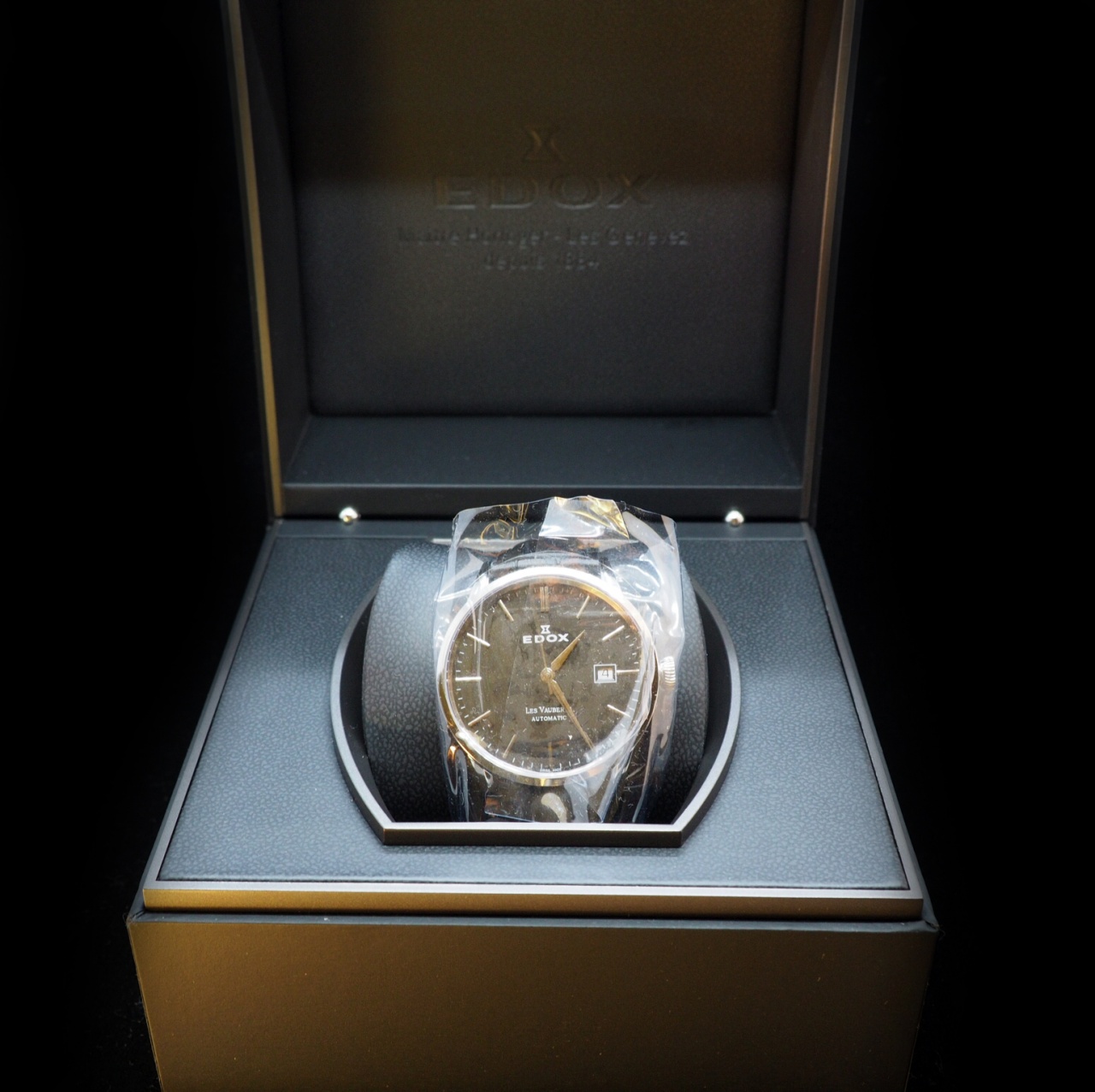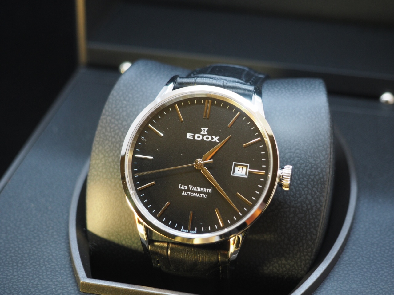 EDOX Les Vauberts Automatic // Элегантный костюмник // Черные // Ремешок // Сапфир // D=39 мм