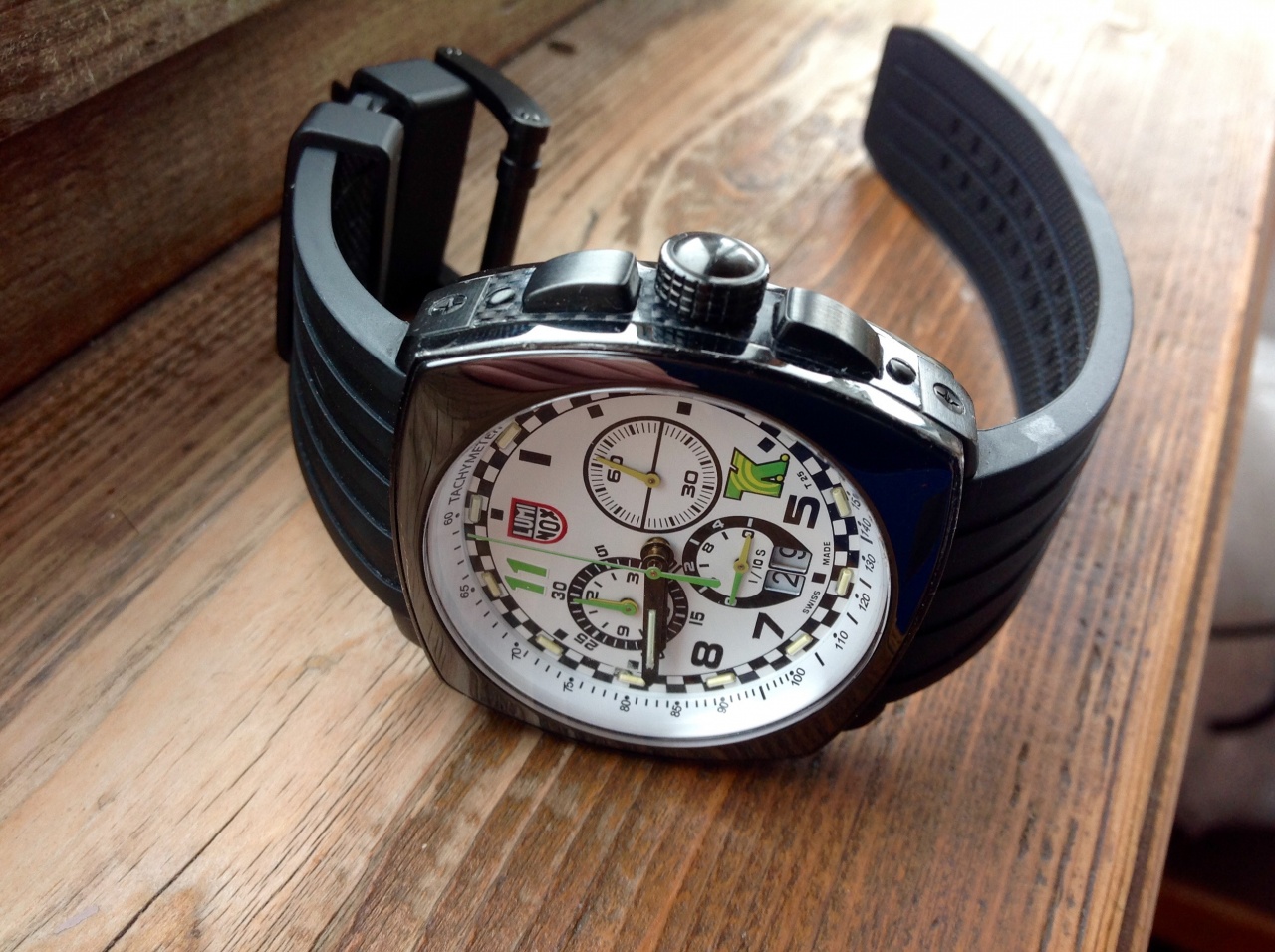 Продам отличный Luminox,часы с элементами "military" созданые совместно с Тони Канааном - автогонщиком, чемпионом серии IndyCar.Смотрятся на запястье очень брутально и ярко за счёт нестандартной формы корпуса и карбоновых вставок по бокам.Купольный сапфир,тритиевая подсветка. Кварцевый механизм с функцией хронографа и "большой датой", тахометрическая шкала.Лимитированная серия,всего 999 экземпляров в Мире!Механизм RONDA калибр 5050.B (Startech. На 13 камнях.). Секундная стрелка смещена на маленький циферблат (в 2,5 часа). Дополнительные циферблаты хронографа: накопитель на 12 часов 30 минут и 1/10 доли секунд. Секундомер с режимами ADD и SPLIT. Аппертура типа Большая дата. Срок службы батареи 54 месяцев. • Элемент питания 395. • Точность хода не хуже -10 +20 сек./в месяц. • Сапфировое стекло устойчивое к царапанию. • Антибликовое покрытие внутренней поверхности стекла. • Корпус из высококачественной нержавеющей стали со стойким PVD покрытием.Безель-карбид титана.• Диаметр корпуса 44 мм. • Подсветка индексов и стрелок с использованием автономных миниатюрных источников света.Несомненным преимуществом подсветки «тригалайт» является полное отсутствие необходимости во внешних источниках питания, необычайно длительный срок свечения, исчисляемый десятилетиями. Ремешок из полимерного материала. Водозащита до 10 АТМ.Из минусов-не горит индикатор на минутной стрелке. в комплекте только часы,обмен не интересен,пересыл на покупателе.Цена с учётом вышеперечисленных недостатков.
