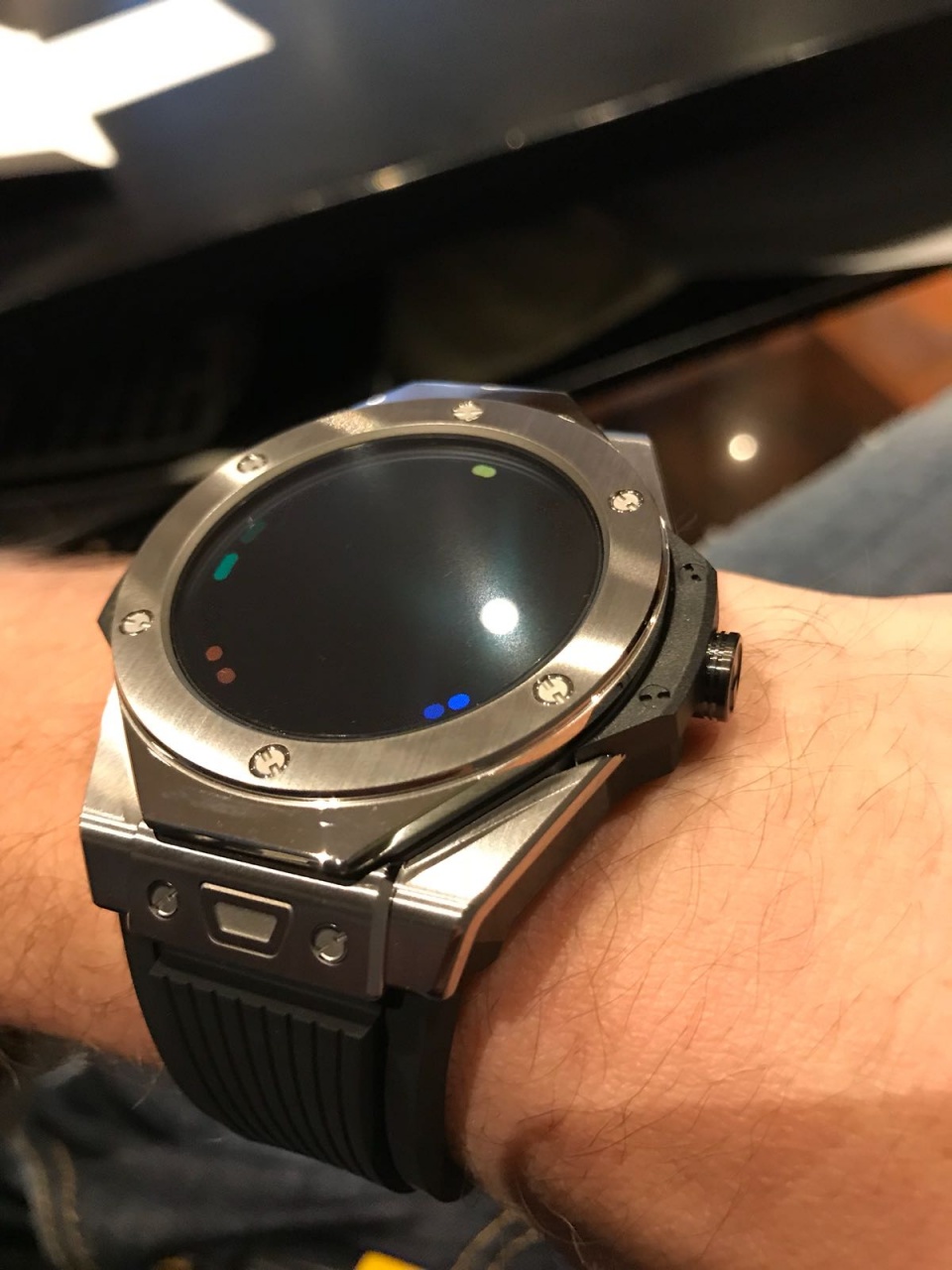 Умные часы Hublot Big Bang Referee 2018 FIFA 400NX1100RX имеют диаметр 49 мм, оснащены жидкокристаллическим циферблатом, Wi-Fi, Bluetooth и суточным запасом батареи работают на основе INTEL®️.