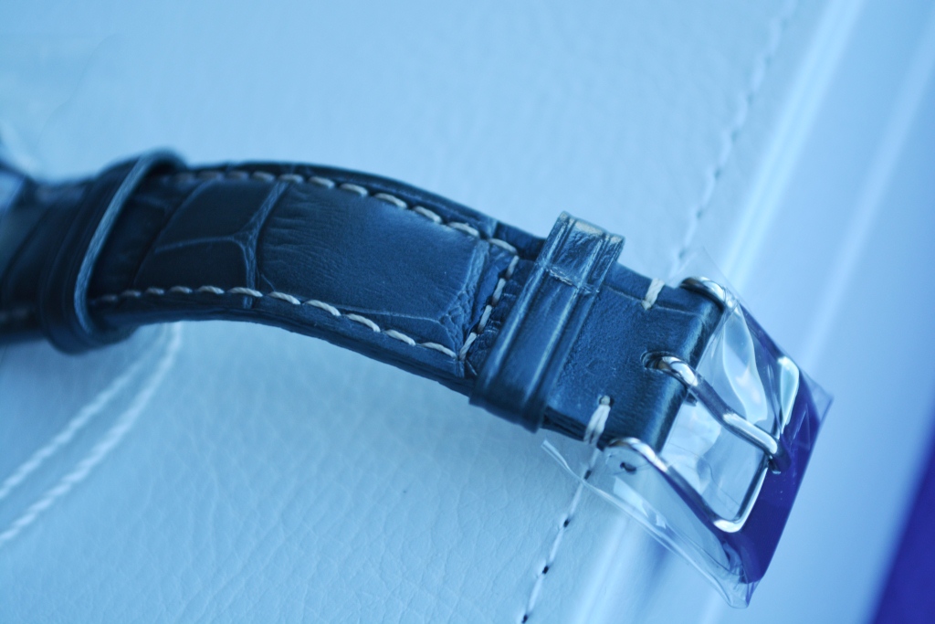 Серебристый сатинированный циферблат с накладными блестящими метками и логотипом. Окошко даты в положении 6 часов