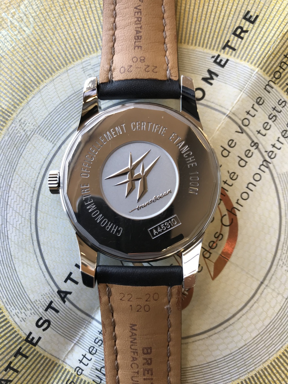 Механизм: механический с автоподзаводом, Breitling Caliber 45, хронометр COSC, 25 камней, запас хода не менее 40 часов