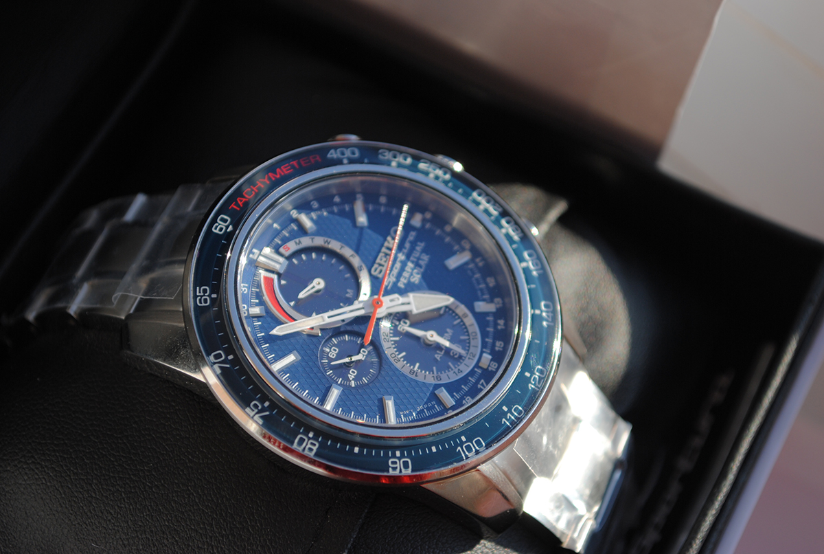 Часы-хронограф SEIKO SPORTURA SSC355P1 с синим циферблатом//безель под стеклом//активный отдых//