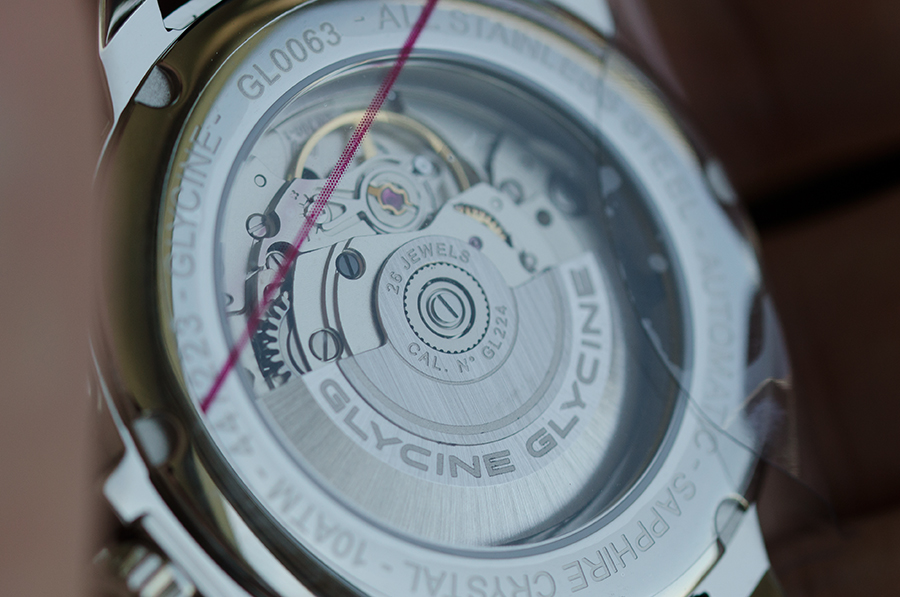 Calibre: GL224 Swiss automatic movement, Glycine decorated rotor