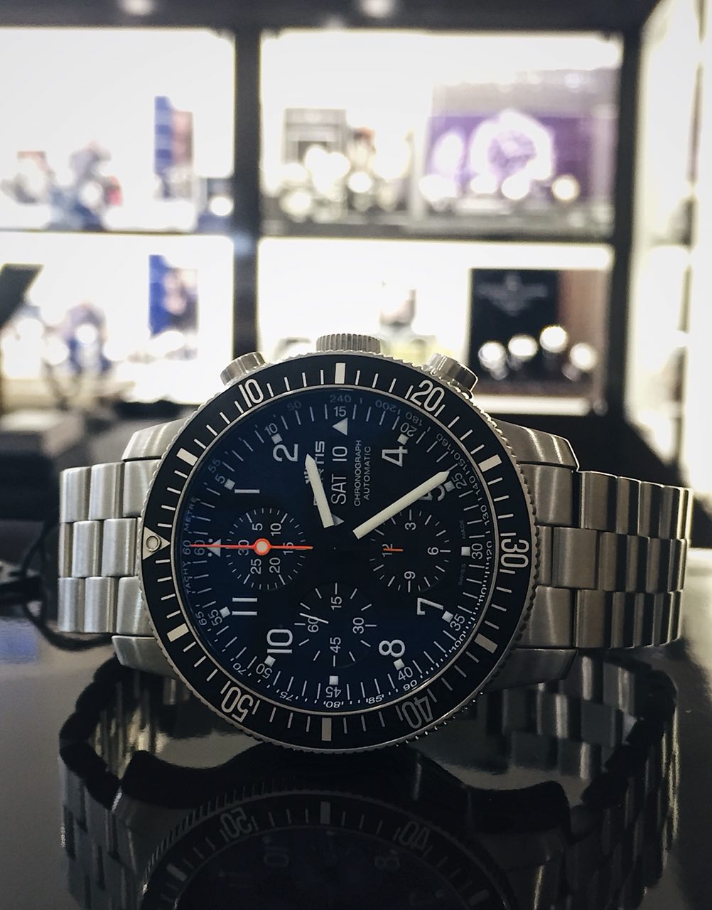 Престижные швейцарские часы, имеющие ярко выраженную авиакосмическую направленность. Повышенная водостойкость 200 метров. Корпус и браслет из нерж. стали. В механизме 25 рубиновых камней, 28.800 полуколебаний в час, тонкая настройка, антишоковая система. Сапфировое стекло с двусторонним антибликовым покрытием.