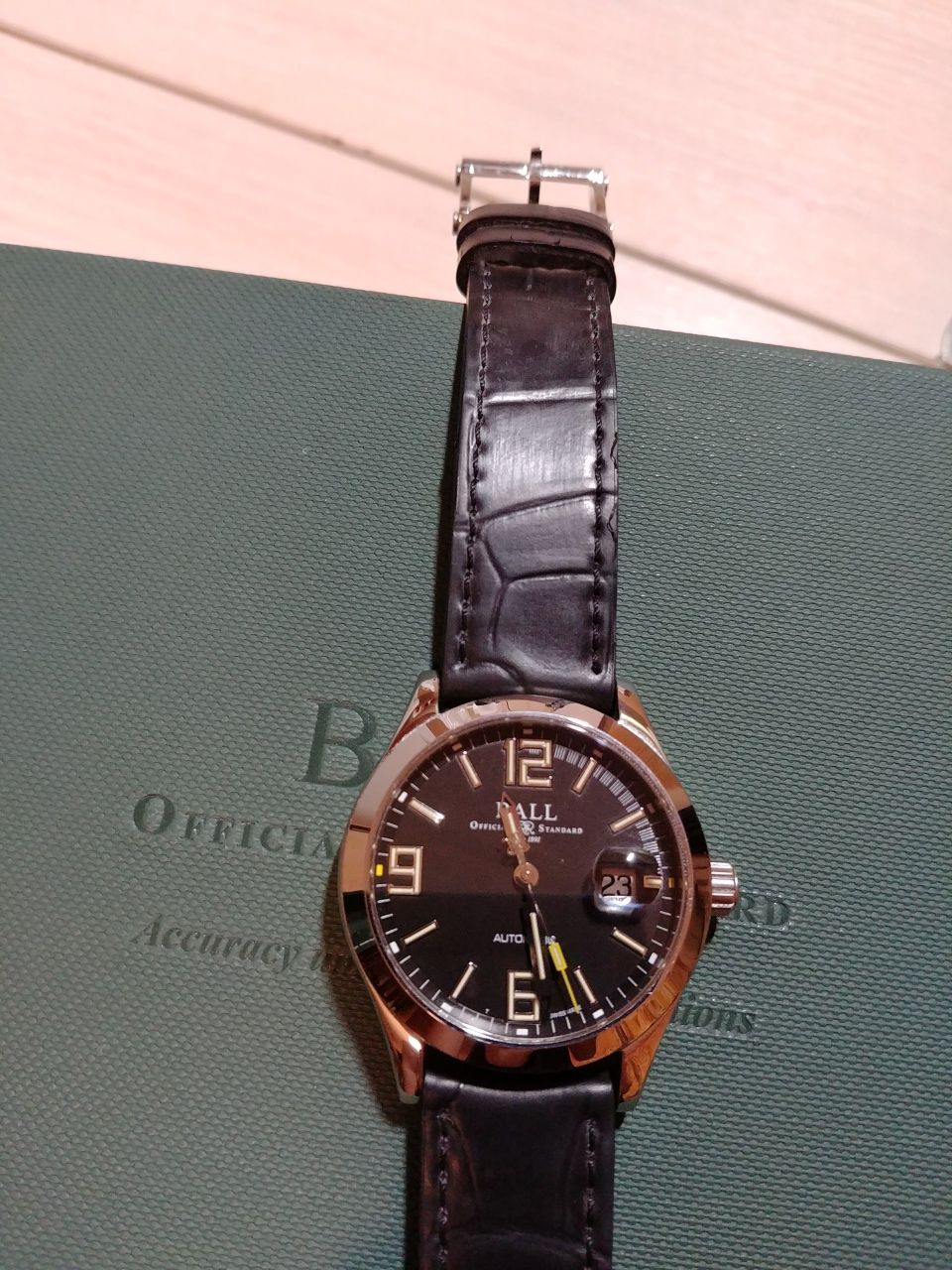 Продам отличные часы полученные по предзаказу в этом году в июне. Механизм BALL RR 1101, на основе ETA 2892. Антимагнитная защита до 80 000 а/м. Размер корпуса 40 мм. Тритиевая подсветка желтого цвета. Ход отличный, около +2 сек в сутки, при активной носке. Родной браслет изрядно поцарапан, на самом деле он просто полированный и царапается от взгляда (ничего страшнее офисного поюза часам не доставалось). В комплекте отдам отличный оригинальный резиновый ремешок с оригинальной стальной баклей. Ремешок сделан под крокодила, с обратной стороны так и не отличишь от кожи. Ремешок носился буквально один день. На корпусе часов только микроцарапки, которые возможно разглядеть только с лупой.