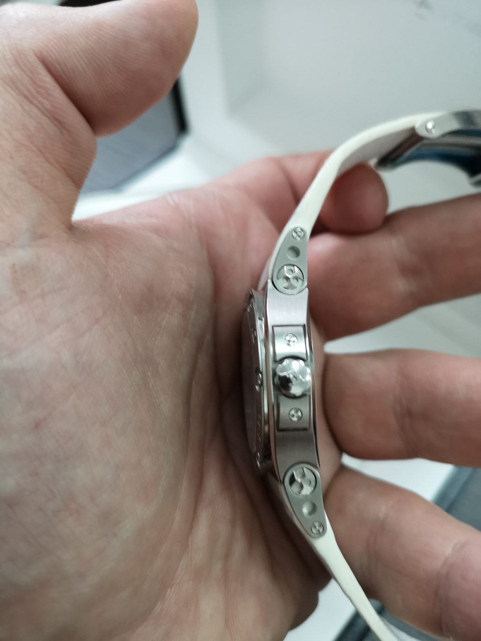 6 крупных бриллиантов на безеле и 20 мелких на циферблате обшим весом около 0,4ct!
