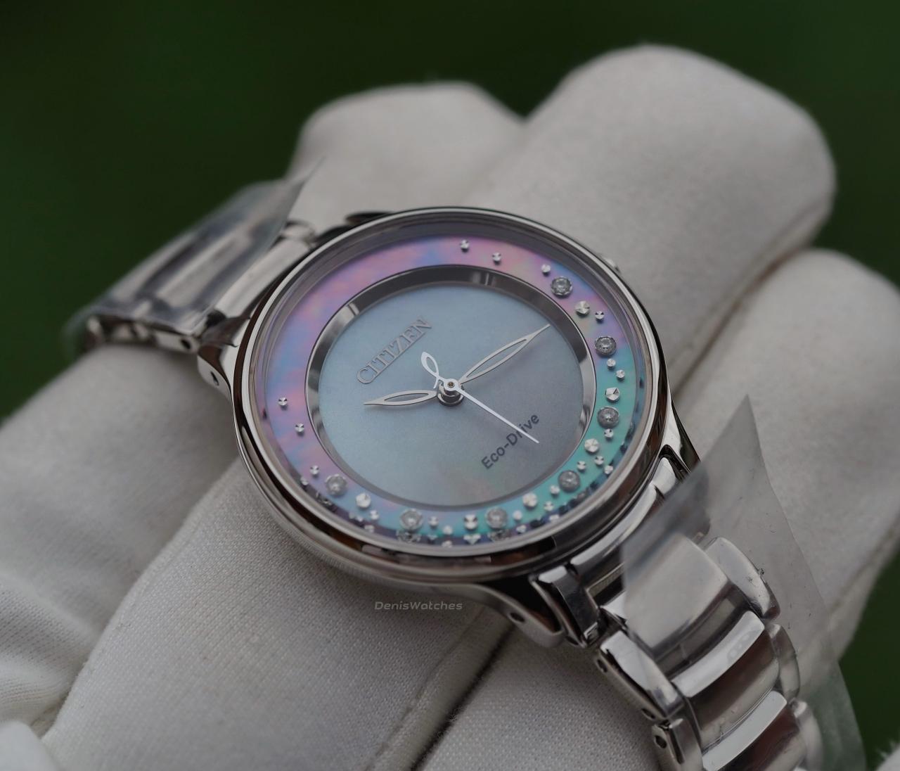Перламутровый двухуровневый циферблат с 7-ю бриллиантами