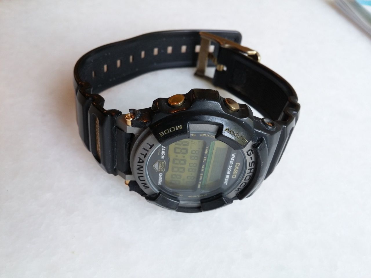 Перебирал старые вещи на даче и наткнулся на одни из первых своих casio mrg-1. Помню, что модель 1996 г, покупал ее в 1999 г. Сколько носил - уже не помню. Серия mrg и этим все сказано. Сделаны в Японии. Описание можно найти в инете. Поменял батарею в августе с проверкой на герметичность. Все работает, все функции живы. Ремень и защитка корпуса родные. Часть защитки корпуса отвалилась, видно на фото. Коробка, инструкция оригинальные. Без обмена. Спасибо.