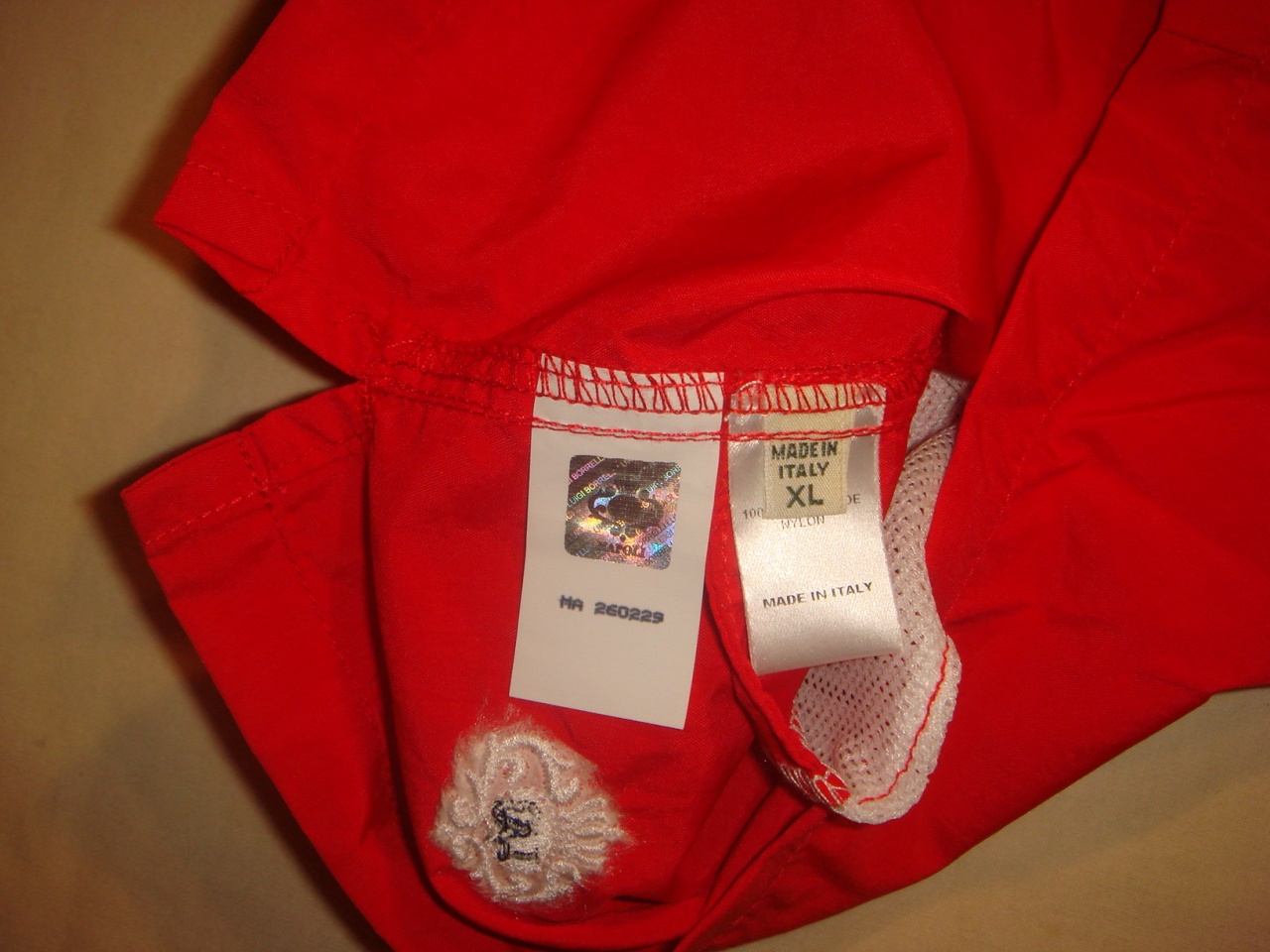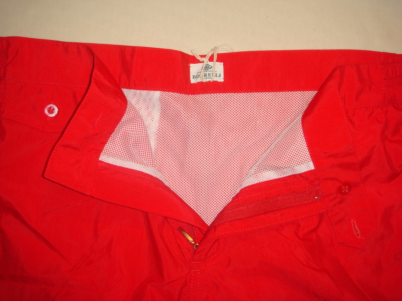Продаются новые мужские шорты для плавания итальянского бренда BORRELLIпревосходного исполнения, красного цвета , классическая посадка на талии, логотип, голограмма, молния и пуговицы , сбоку утягивающие резинки , сзади карман на молнии, спереди кармашек на пуговице, сбоку прорезные карманы , внутри дополнительные сетчатые плавки, состав 100% полиэстер, все бирки и запасная фурнитура прилагаются , гарантированный 100% оригинал, размер XL , производство Италия