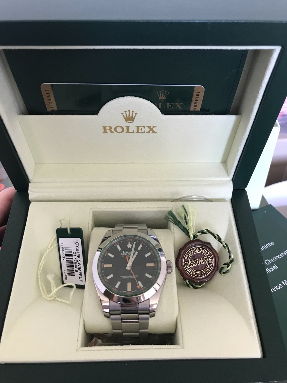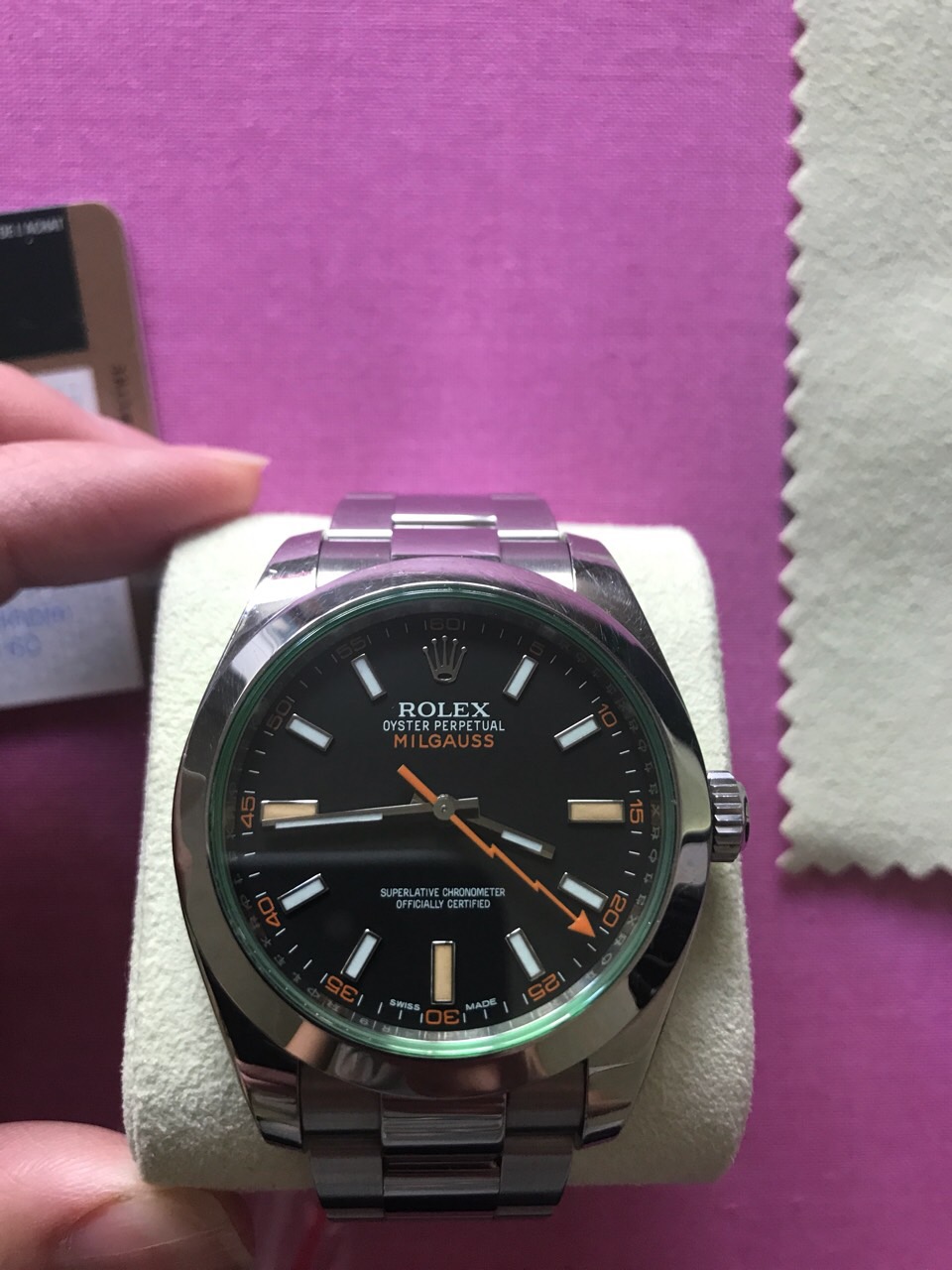 Продаю ROLEX - MILGAUSS GREEN 40mm Steel 116400GV в отличном состоянии без полировки.Не в скрывались. Возможна доставка по России курьером.