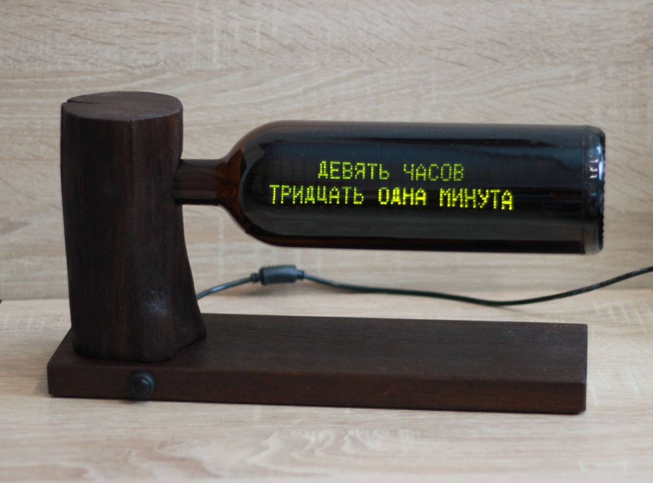 Часы сделаны на базе двухстрочного люминисцентного 40-символьного дисплея.