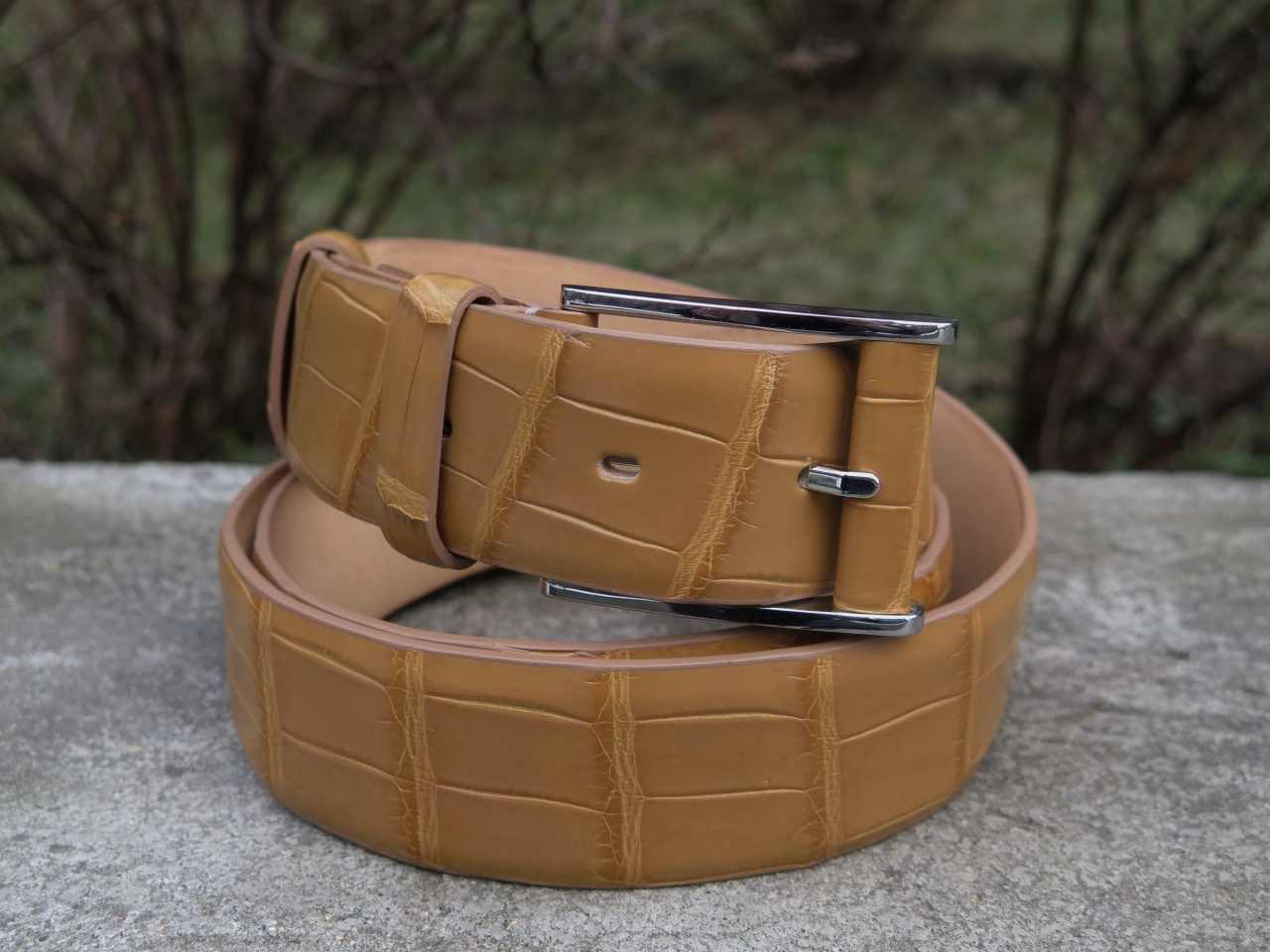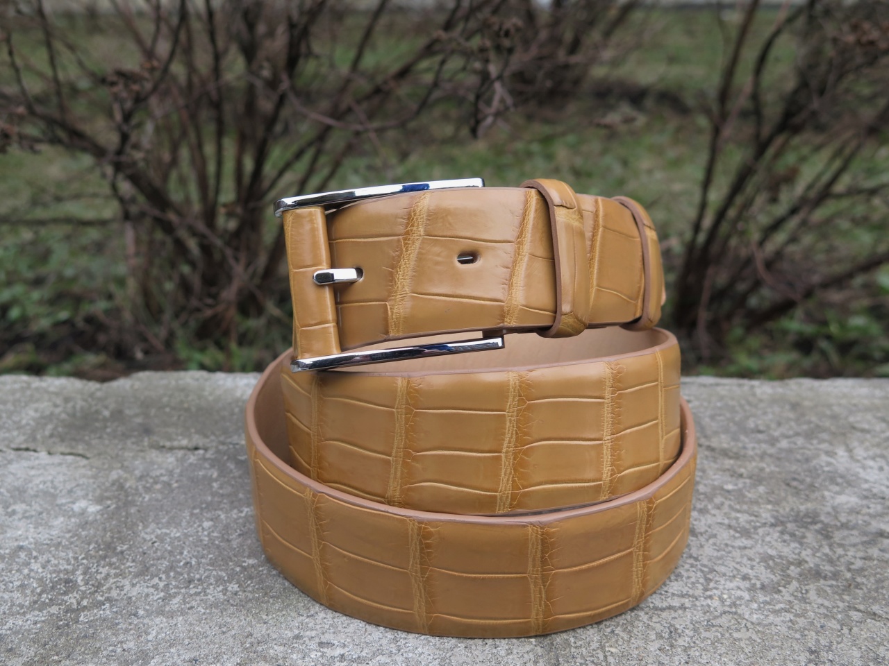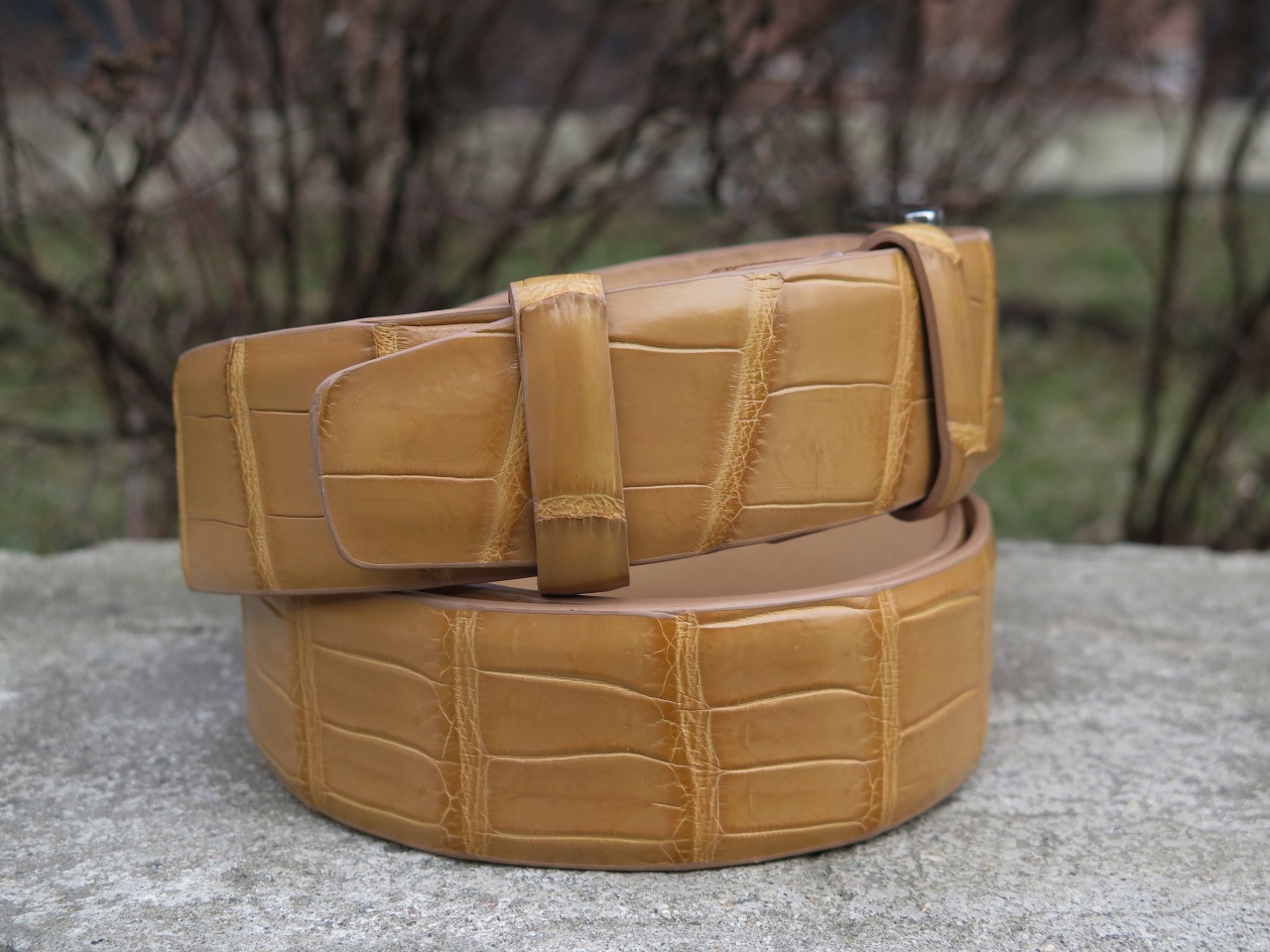 РОСКОШНЫЙ МУЖСКОЙ РЕМЕНЬ ИЗ КОЖИ АЛЛИГАТОРА. ЦВЕТ "МЕДОВЫЙ". СУПЕР ЦЕНА!