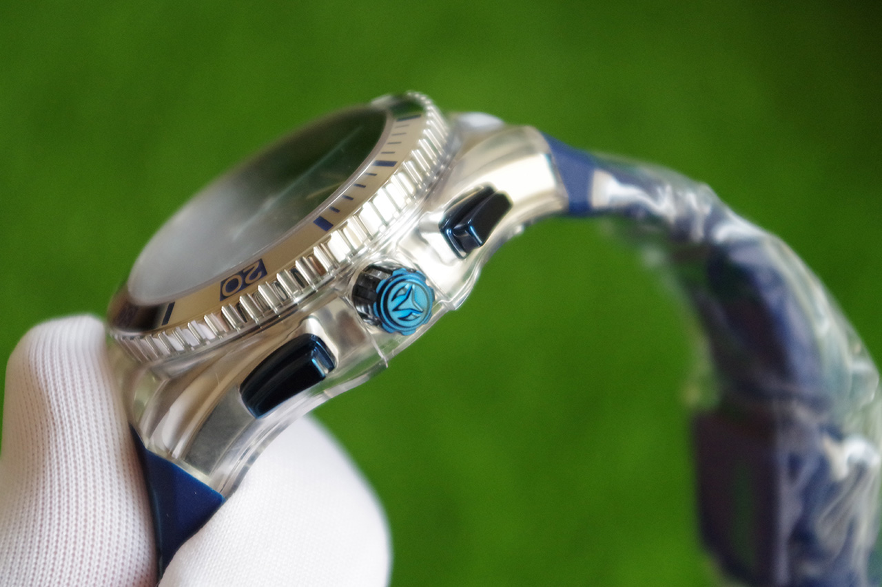 Cruise California. Унисекс. Часы-хронограф с секундомером. Завинчивающаяся заводная головка с защитой. В комплекте сменные синее покрытие корпуса и синий силиконовый ремешок.