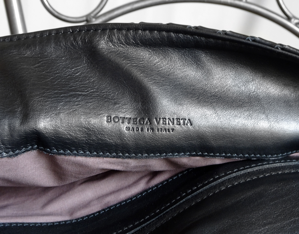 А в этой модели, вся сумка целиком - спереди и сзади - это знаменитая техника intrecciato, плетение из полос мягкой кожи наппа черного цвета.