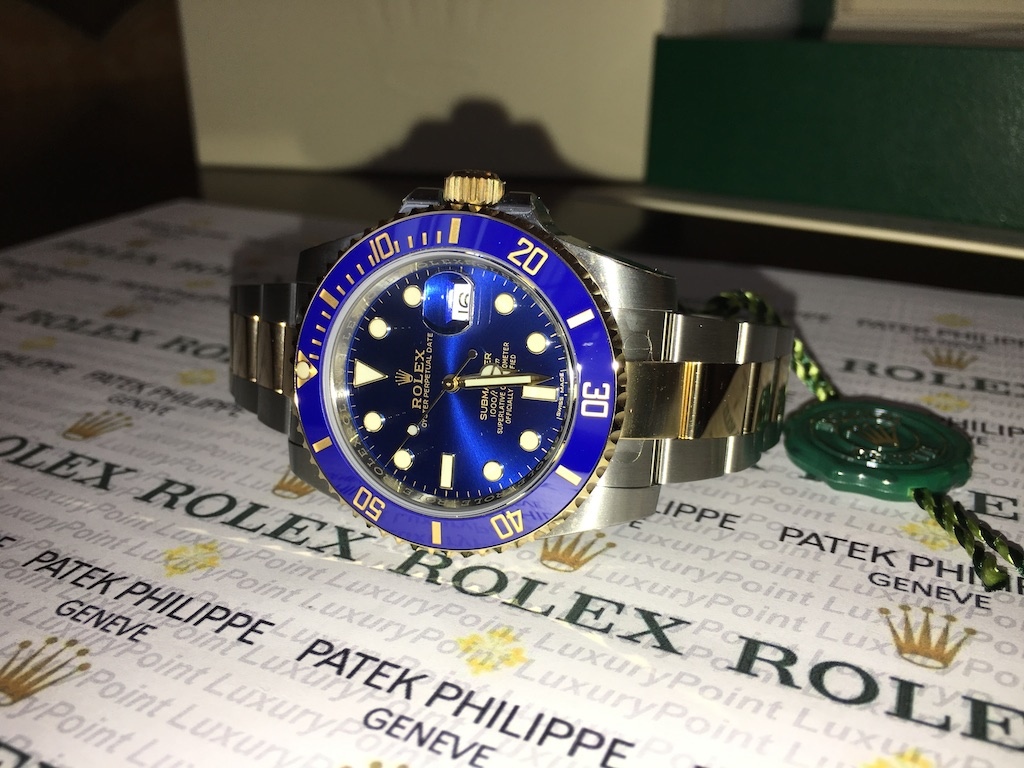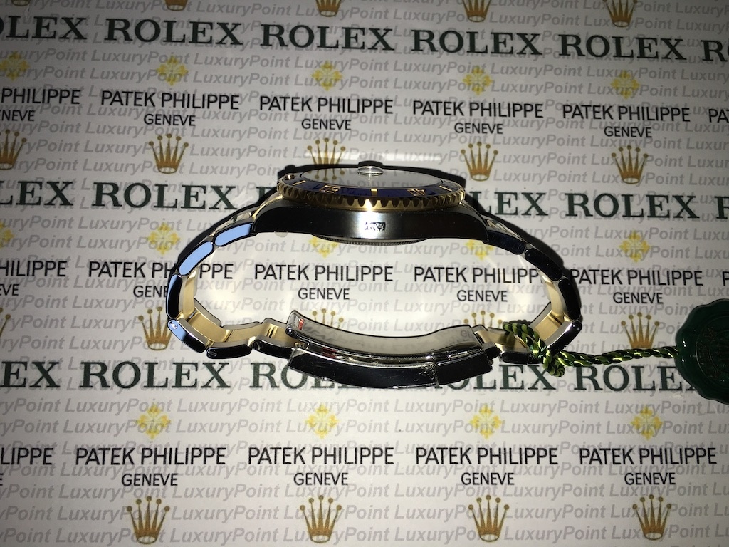 Великолепная возможность приобрести к тёплому сезону самую "летнюю", яркую и позитивную разновидность культового Субмаринера. Предлагается модель из стали и жёлтого золота с керамическим безелем и красивейшим циферблатом сине-фиолетово-золотого цвета, получившего название "шайни".
