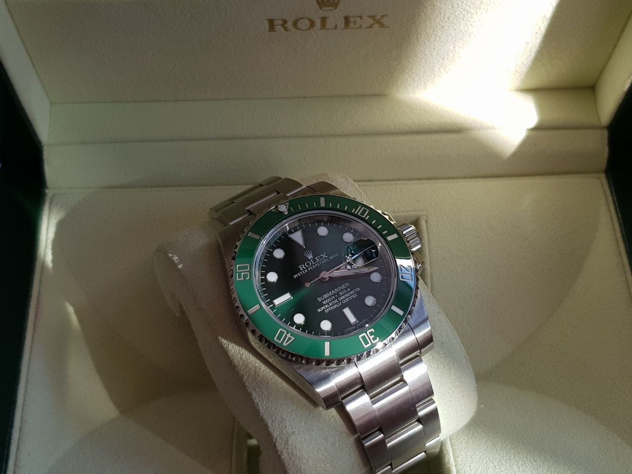 Зеленый Rolex Hulk 116610LV, образец часов для подводного плавания, олицетворяет уникальную связь между компанией Rolex и подводным миром. Прочный и функциональный дизайн часов Oyster Perpetual Submariner быстро стал легендой. Благодаря искусно модернизированному корпусу Oyster, выразительному зеленому циферблату с крупными светящимися часовыми отметками, а также вращающемуся градуированному зеленому безелю Cerachrom и прочному браслету Oyster, новейшее поколение часов Submariner Date возрождает традиции исторической модели, выпущенной в 1953 году и сделан в соответствии с цветом бренда.