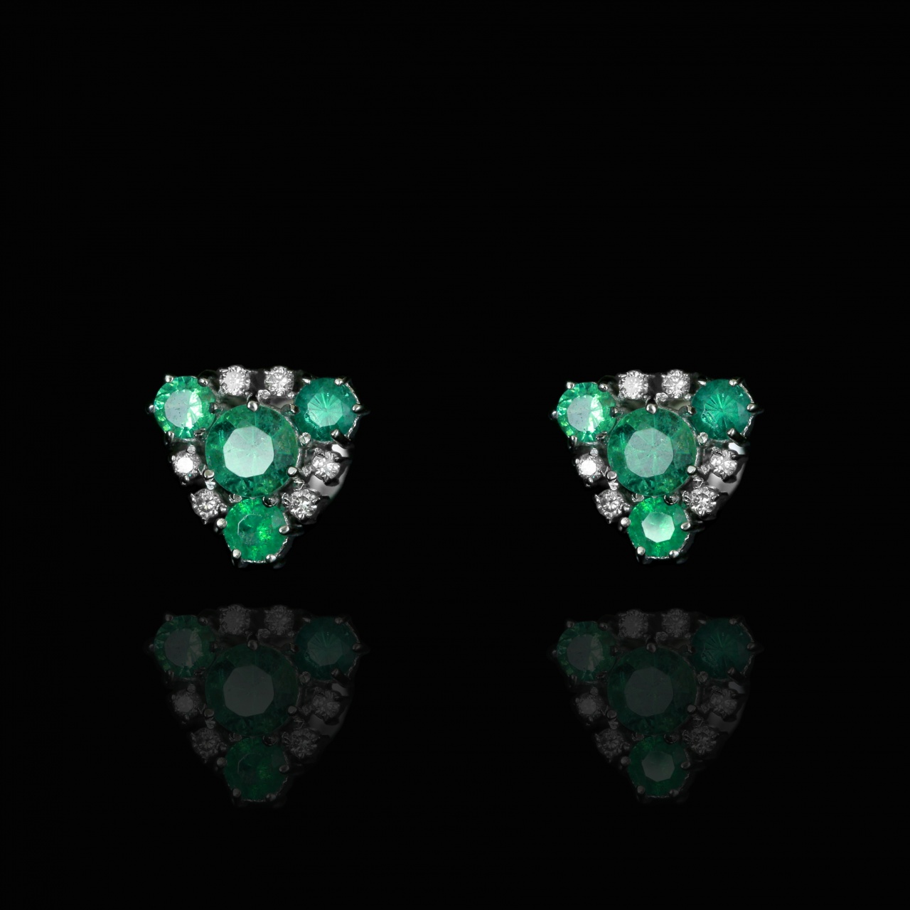 Серьги-пуссеты из белого золота с изумрудами 0,77 карат и бриллиантами 0,06 карат