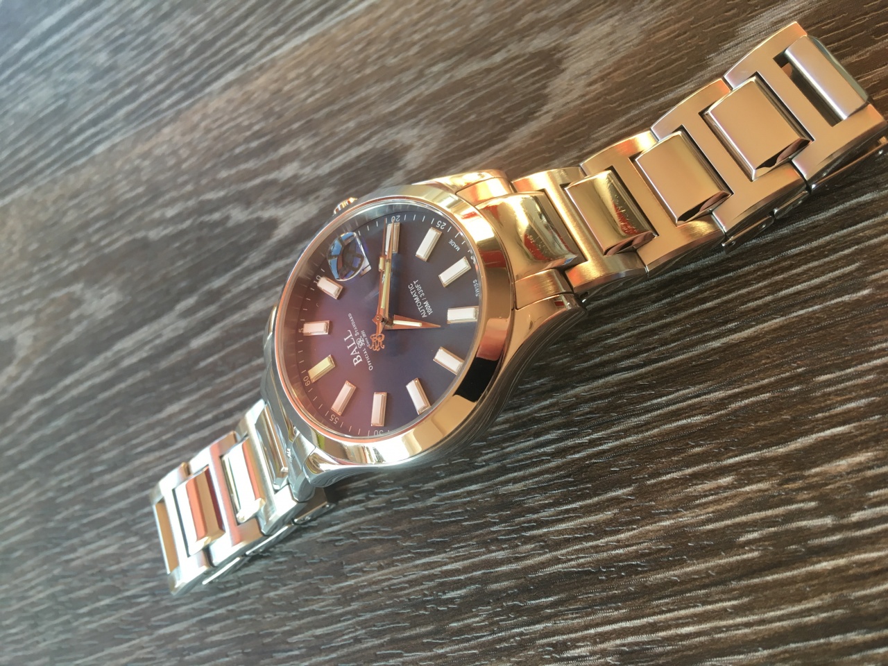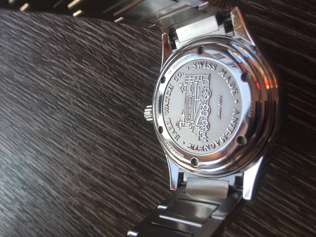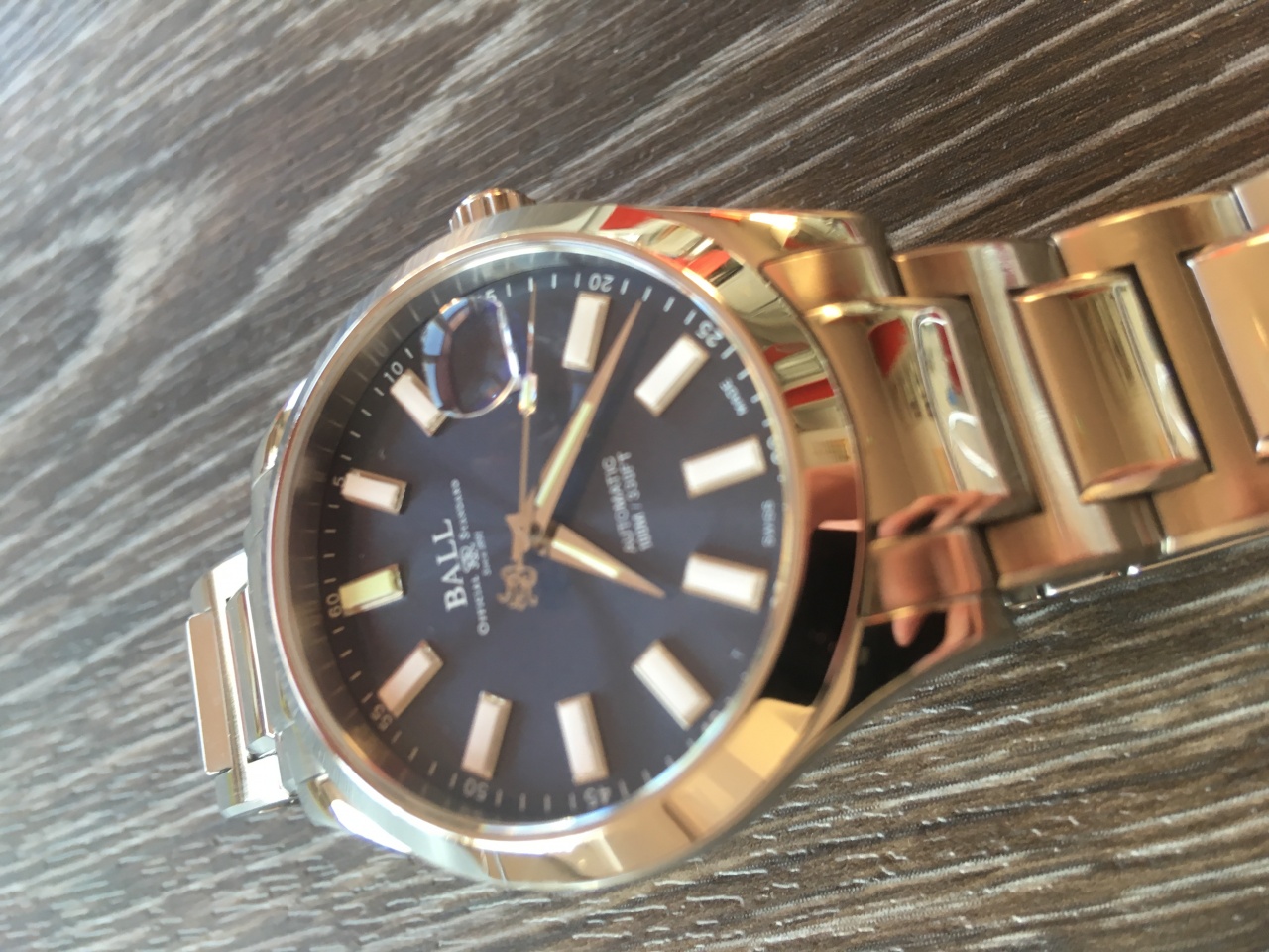 Стекло сапфировое. Окошко даты с увеличительным стеклом. Противоударное устройство оси баланса - 5,000Gs. Защищены от магнитных полей - 4,800A/m. 14 газовых микротрубок (тритиевые колбы- изюминка фирмы Ball) на стрелках и циферблате позволяют видеть время даже в полной темноте. Циферблат очень интересного цвета, переливается всеми оттенками от серо-голубого до синего в зависимости от освещения. Завинчивающаяся заводная головка. Браслет с раскладывающейся застежкой. Водозащита 100м.