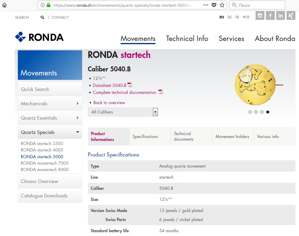 Интересует вопрос отличия оригинального швейцарского механизма Ronda 5040B желтого цвета от оригинального тайландского Ronda 5040B белого цвета, количество камней, надежность, точность хода и т.д.?