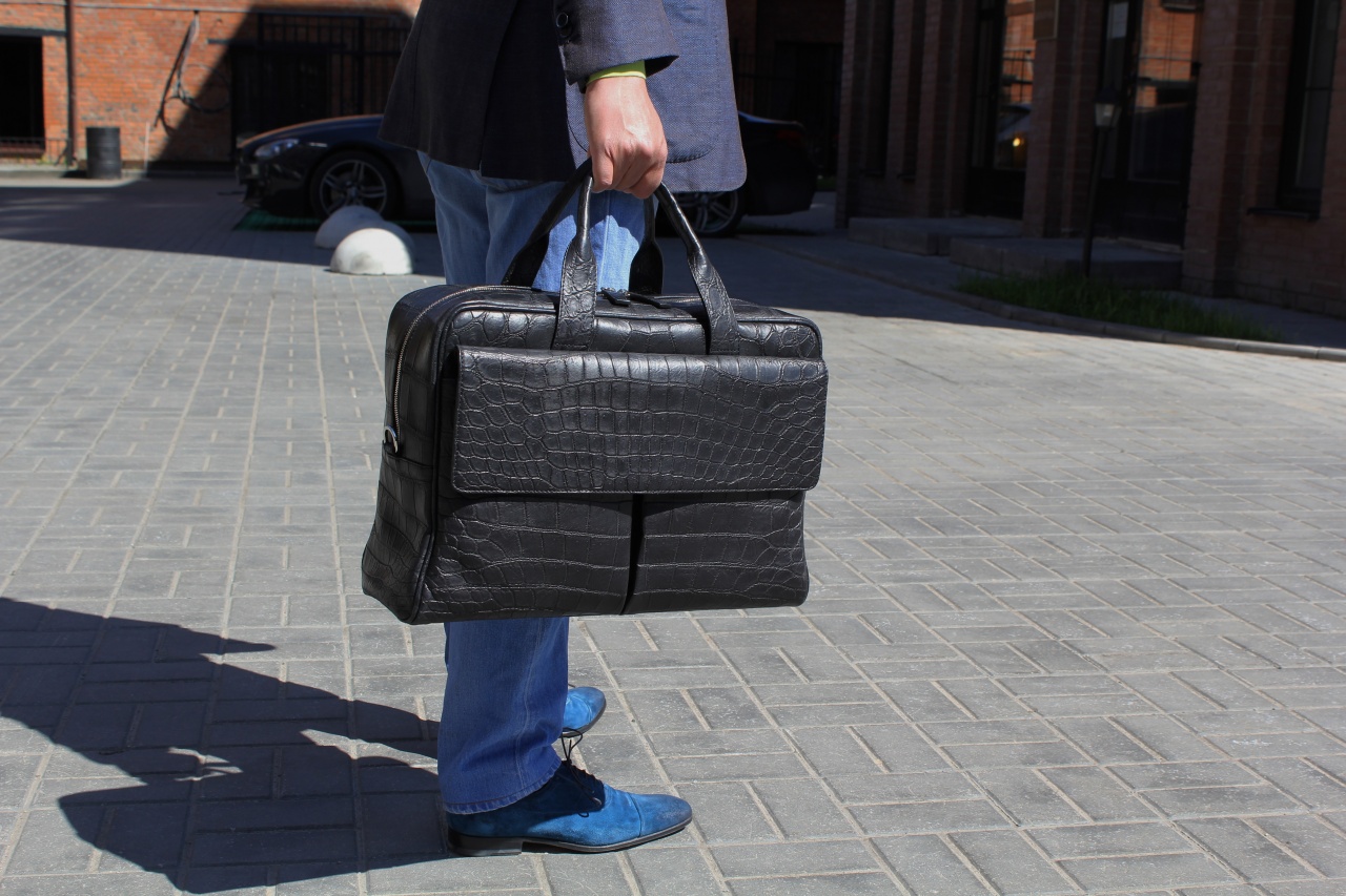 "ТЯЖЕЛЫЙ ЛЮКС", мужская сумка-портфель, черный крокодил. Италия. СУПЕР ЦЕНА!!