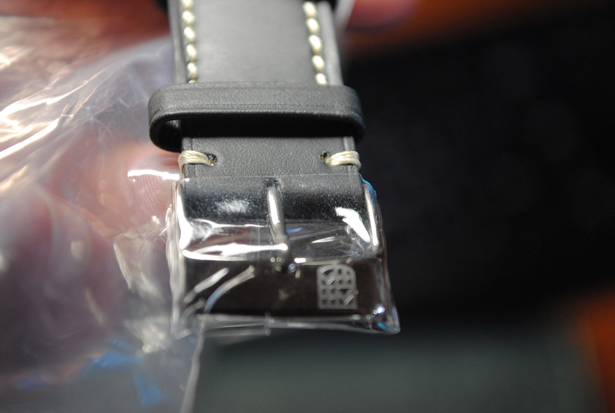 Ремешок: темно-серая мягкая кожа теленка с контрастным швом белого цвета, стальная пряжка
