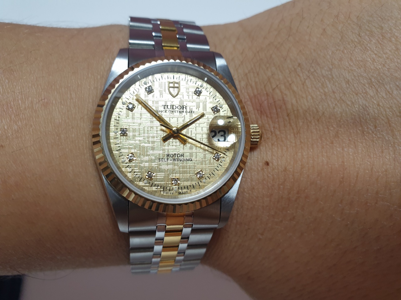 Часы в идеальном стоковом состоянии, бережно и аккуратно эксплуатировались, не полировались, на задней крышке заводская пленка, минимальные следы носки, браслет полный(фото на моей руке 20+), ничего не растянуто, не замято, не затерто и тд...