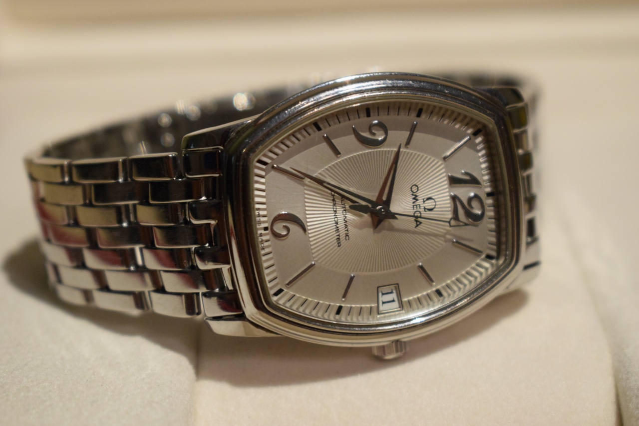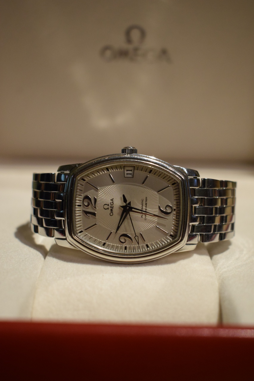 Очень красивая Omega De Ville Prestige Tonneau серый цифер, браслет