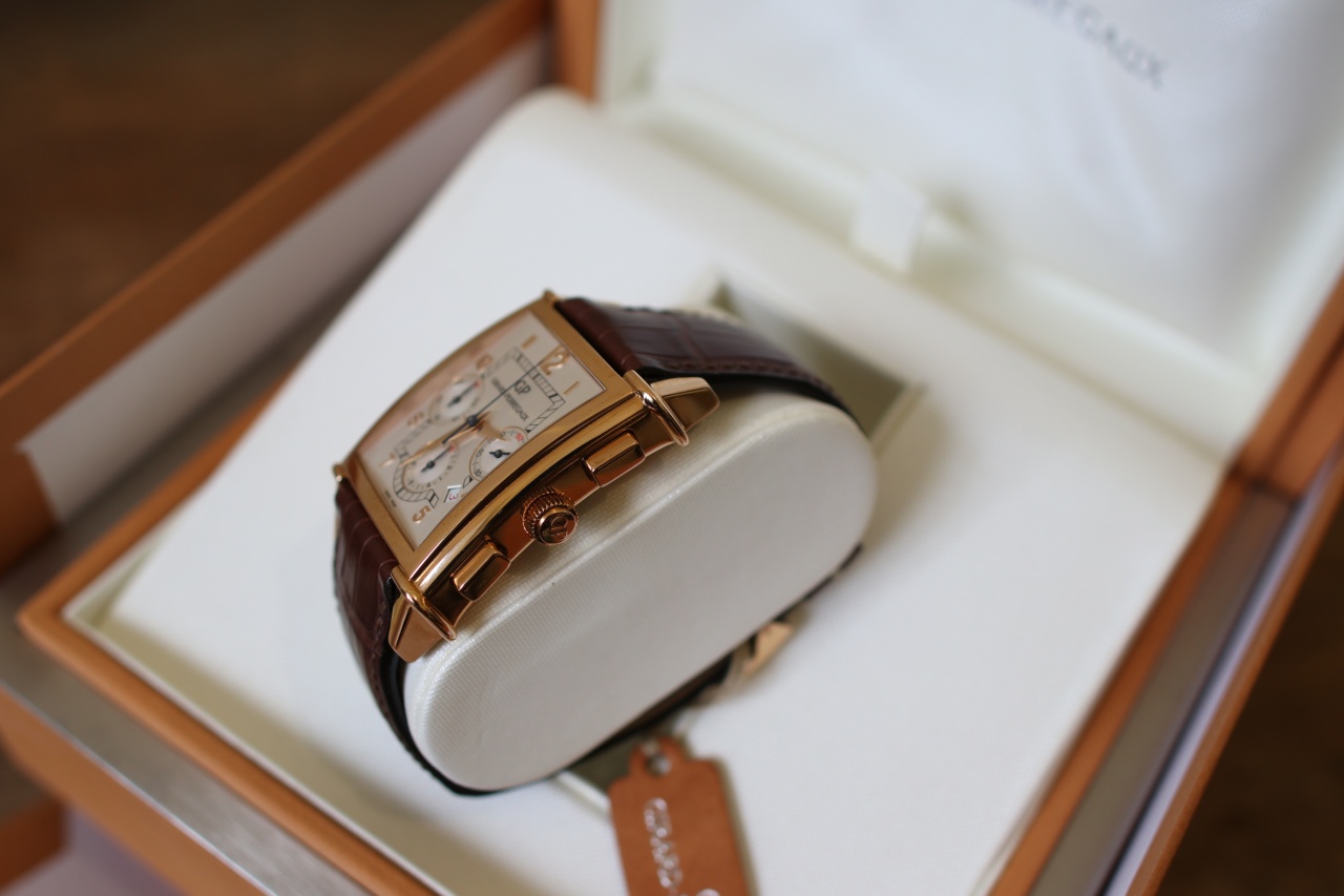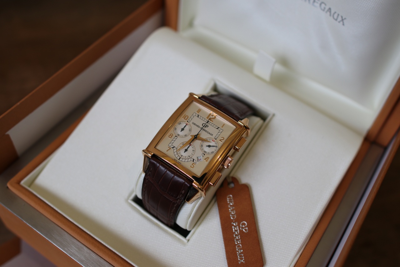 НОВЫЙ!!!Girard-Perregaux Vintage 1945 XXL Chronograph (Розовое золото, Крокодил, Светлый циферблат )
