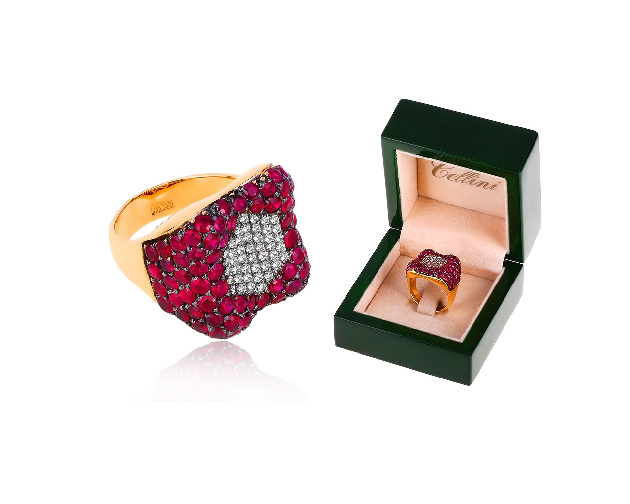 кольцо gellini, кольцо с бриллиантами, кольцо с рубинами 5.31ct |