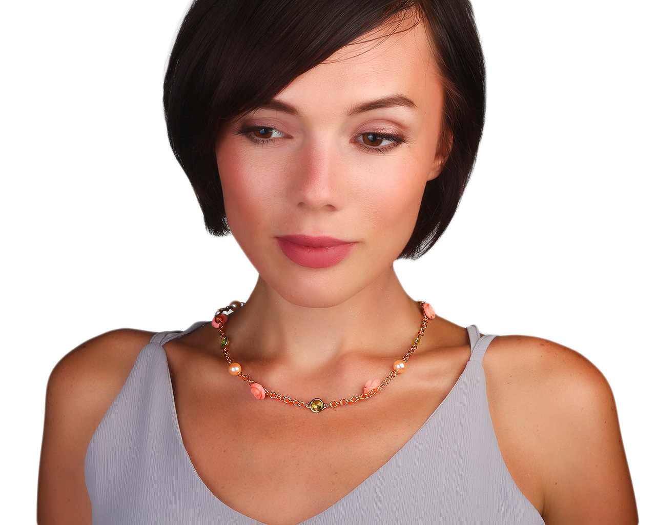 Золотое колье с жемчугом и кораллами MiMi Grace