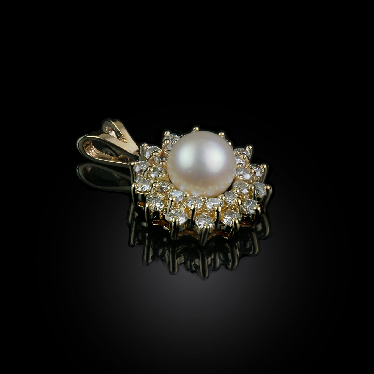 Подвеска из желтого золота с жемчугом и бриллиантами 0,56 карат