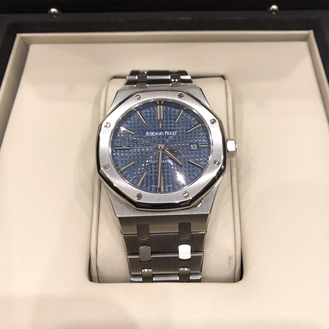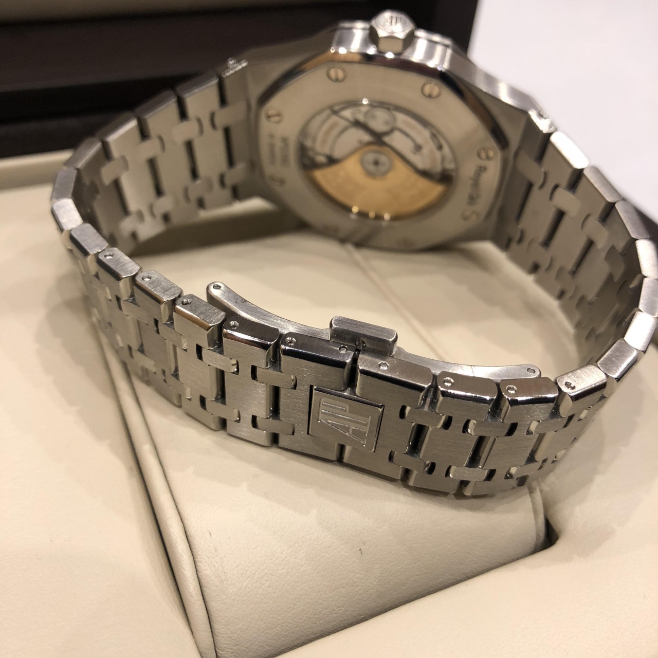 Audemars Piguet Royal Oak Automatic ref. 15400ST.OO.1220ST.03 - самые узнаваемые классические часы швейцарской мануфактуры Адемар Пиге. Элегантный, и в то же время немного спортивный корпус, толщиной всего 9,8 мм прекрасно сидит на запястье и отлично подойдет как к деловому костюму, так и к повседневной и даже спортивной одежде. В сочетании с водозащитой в 50 метров это делает часы Audemars Piguet Royal Oak Automatic одними из самых универсальных.