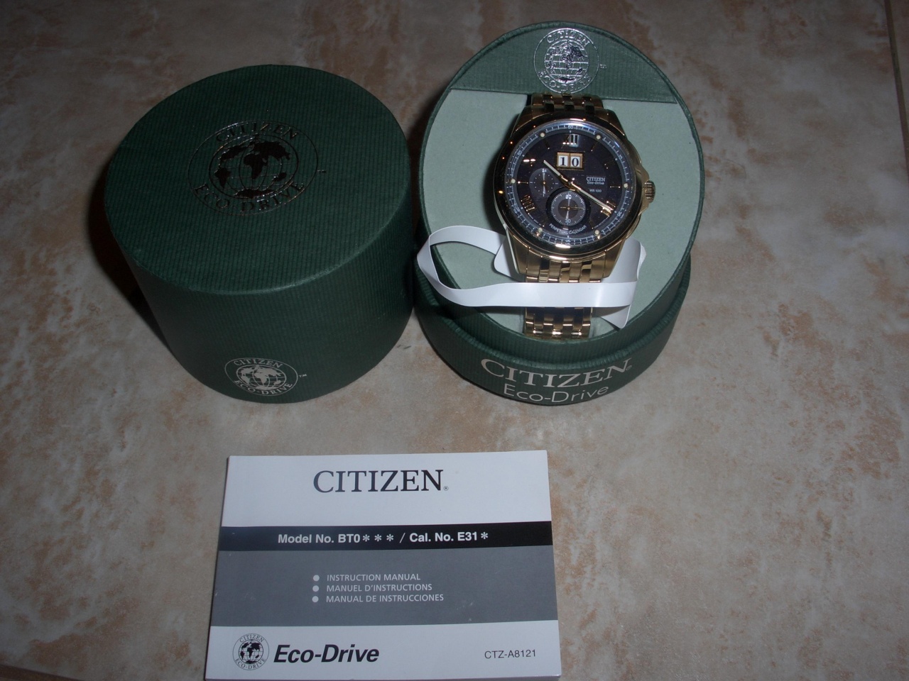 • Система ECO-DRIVE - патентованная технология CITIZEN заключающаяся в размещении фотоэлементов скрытых под циферблатом и постоянно подзаряжающих аккумулятор часов. Продолжительность работы после полной зарядки аккумулятора при последующем хранении в темноте - 12 месяцев. Система предупреждения о низком уровне заряда аккумулятора за 72 часа до критического уровня.