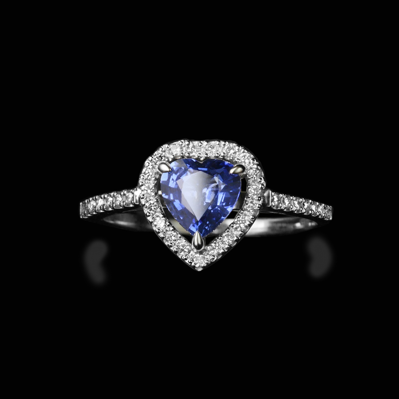 Кольцо из белого золота с сапфиром 0,90 карат и бриллиантами 0,18 карат