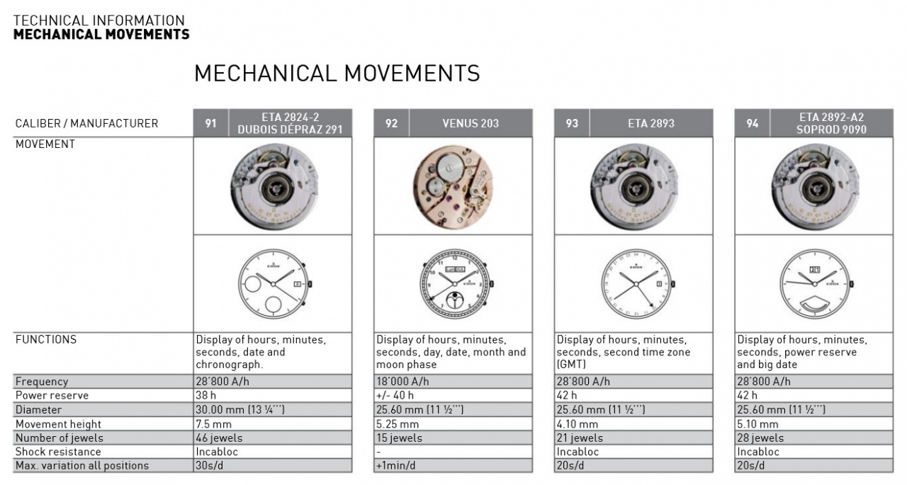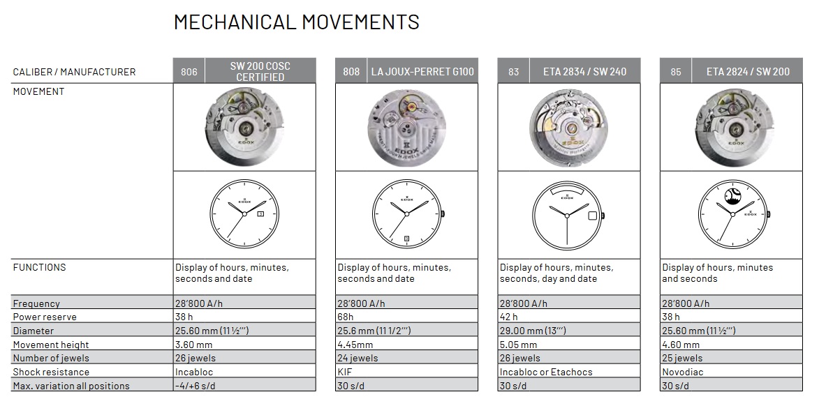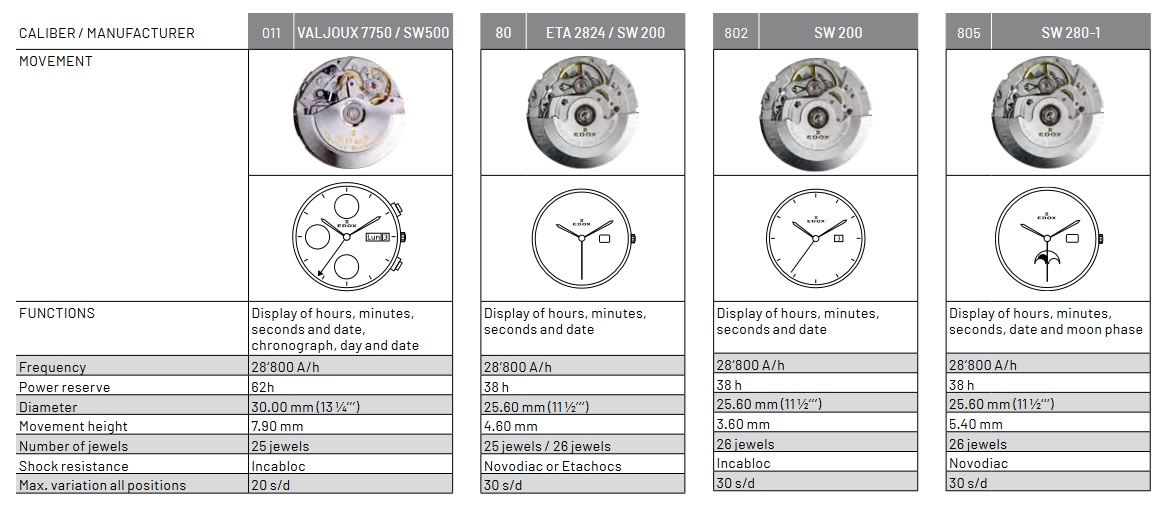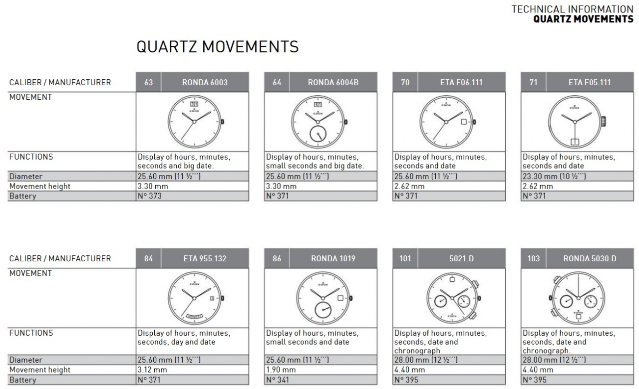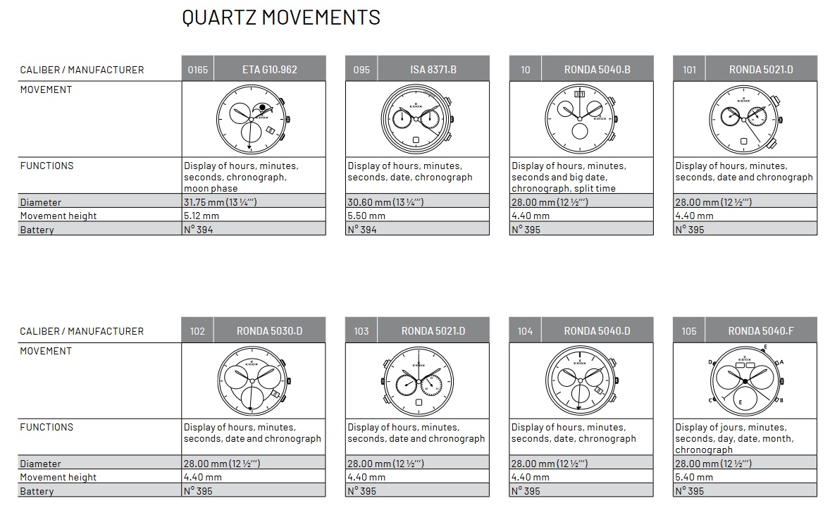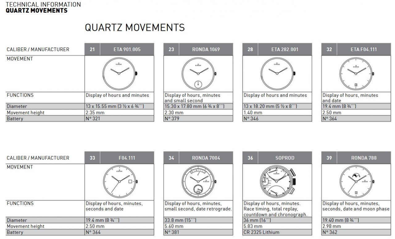 Калибры, используемые Edox
