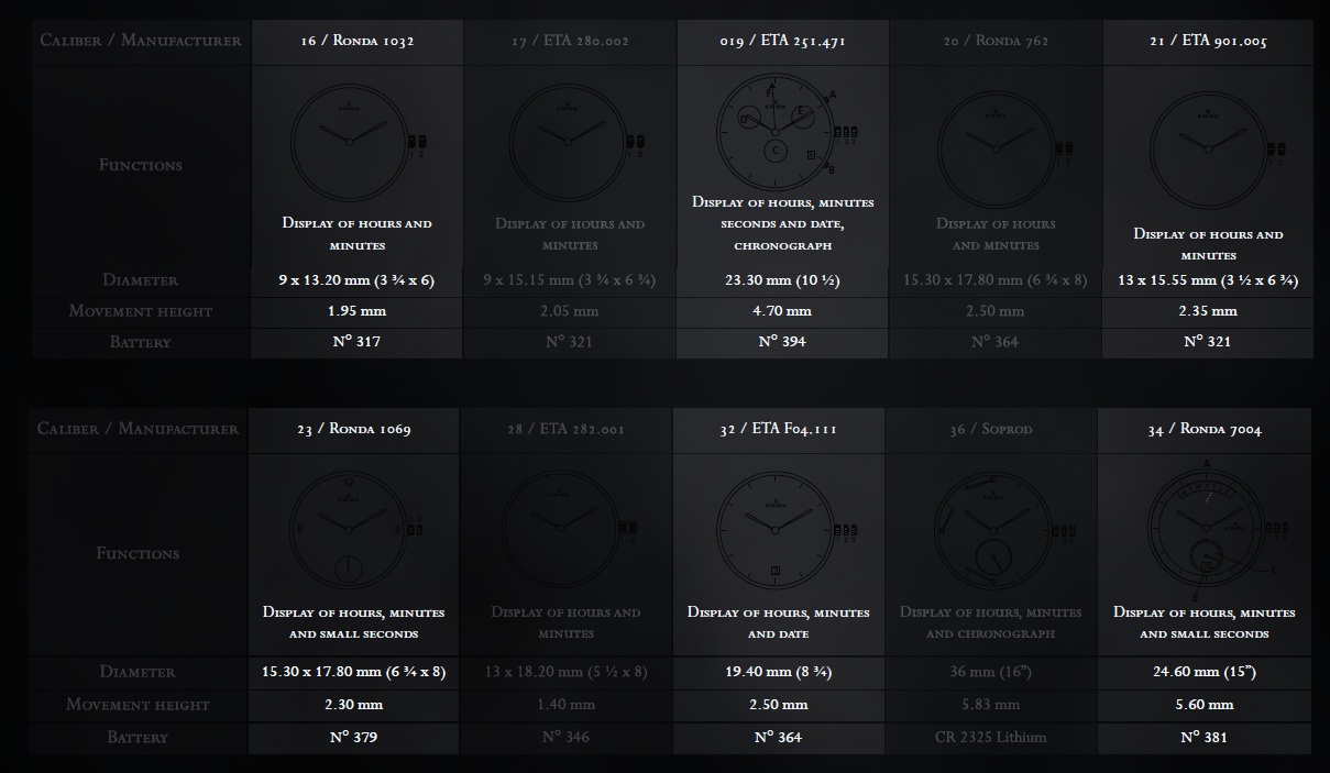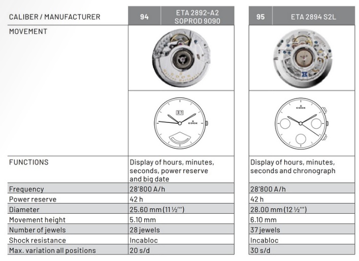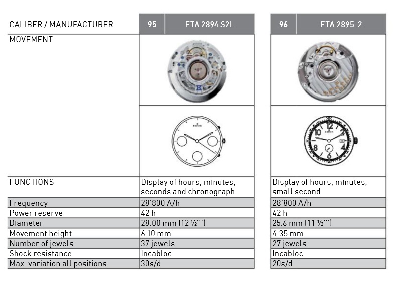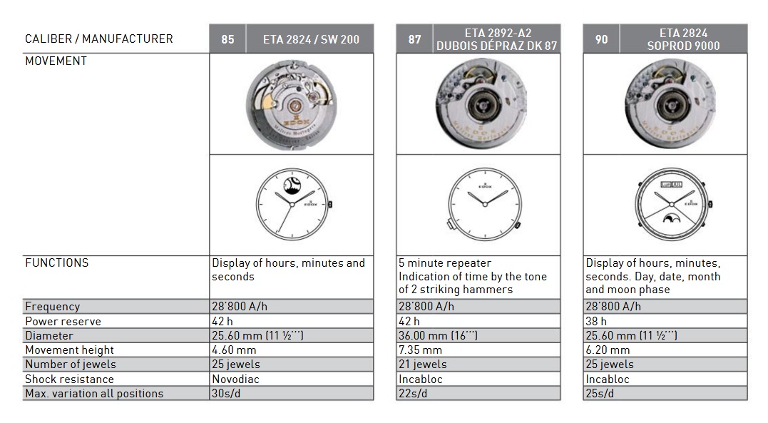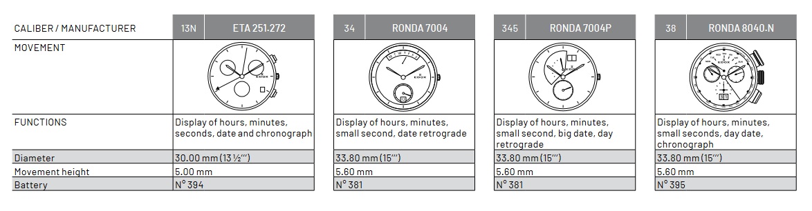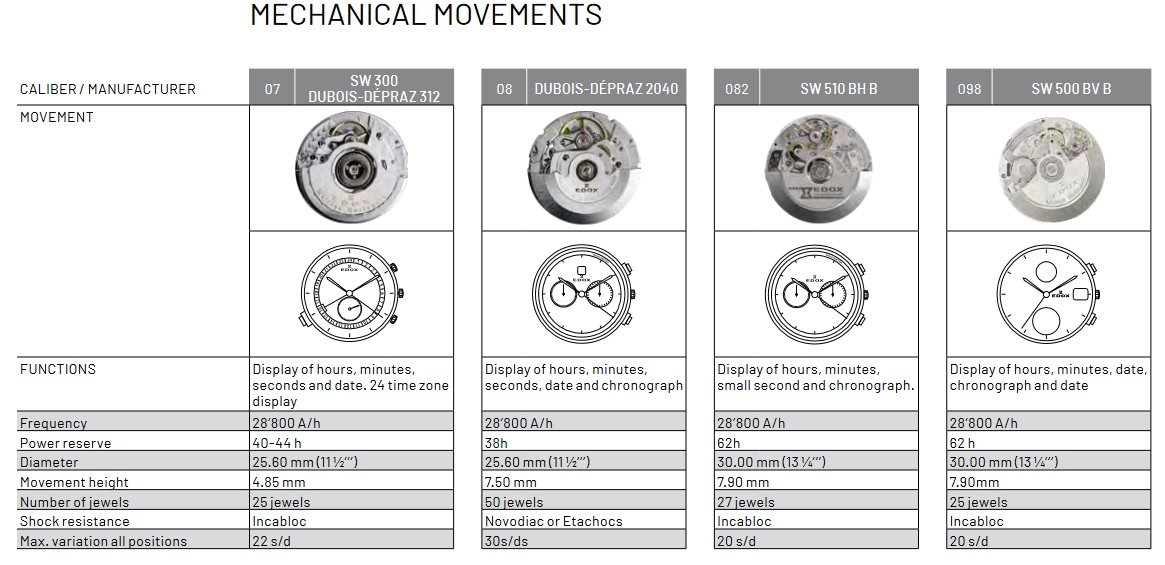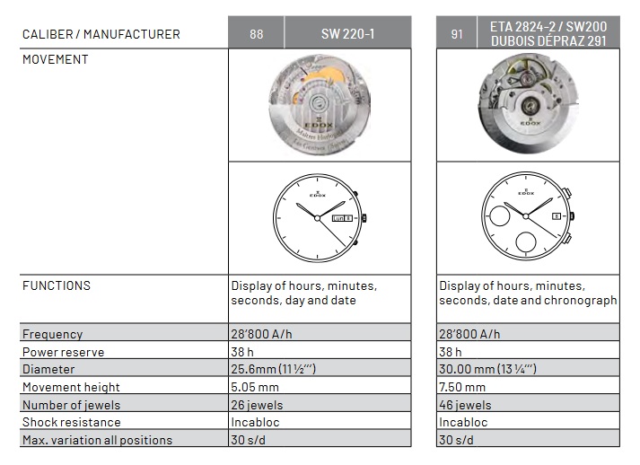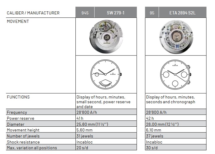 Калибры, используемые Edox