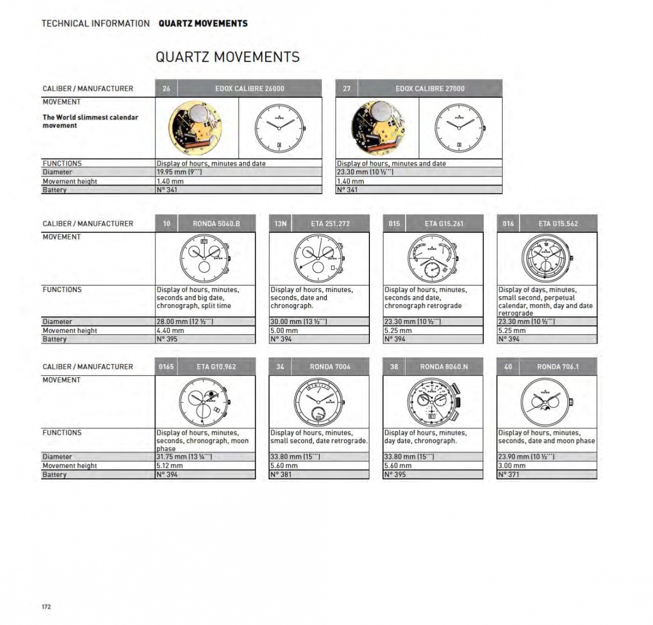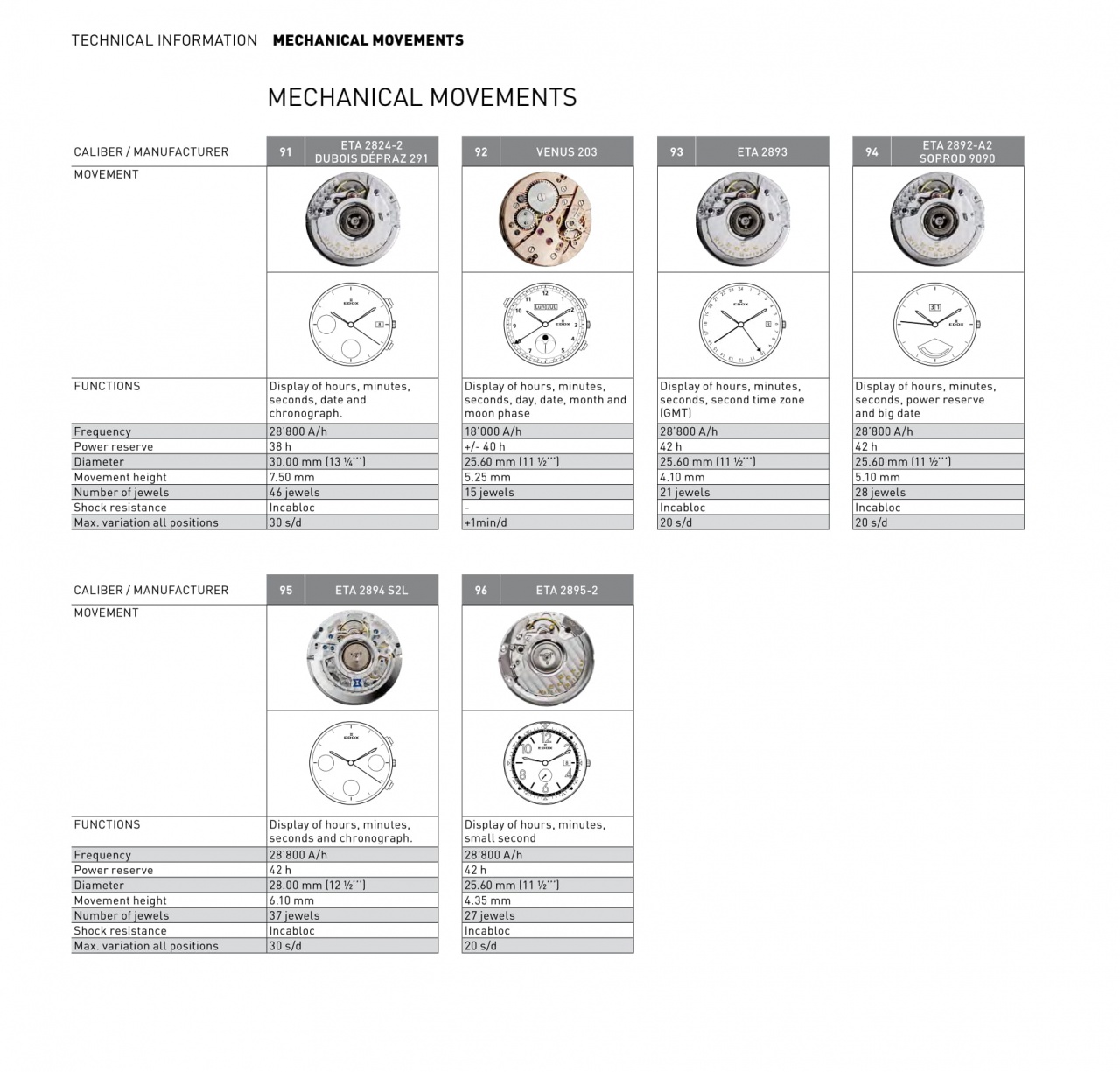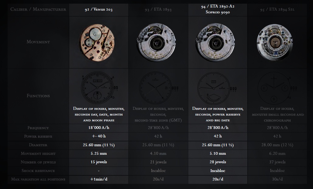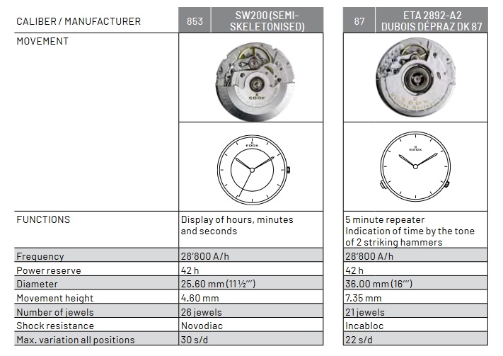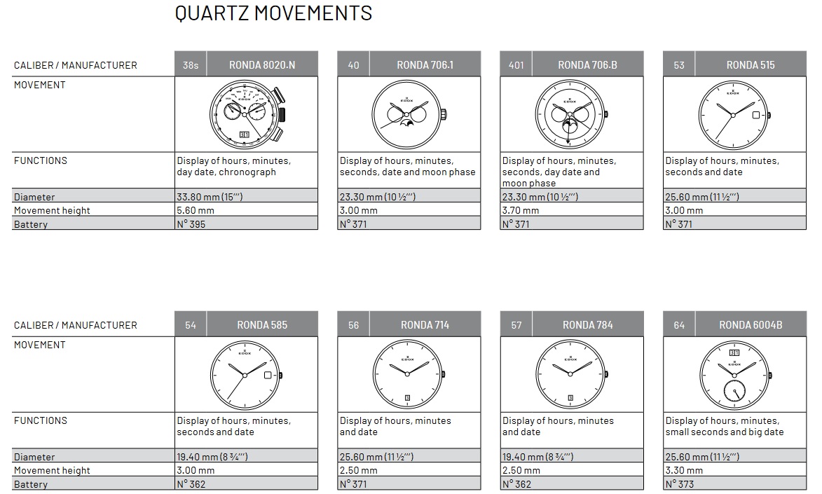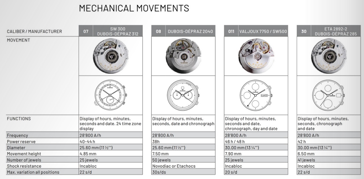 Калибры, используемые Edox