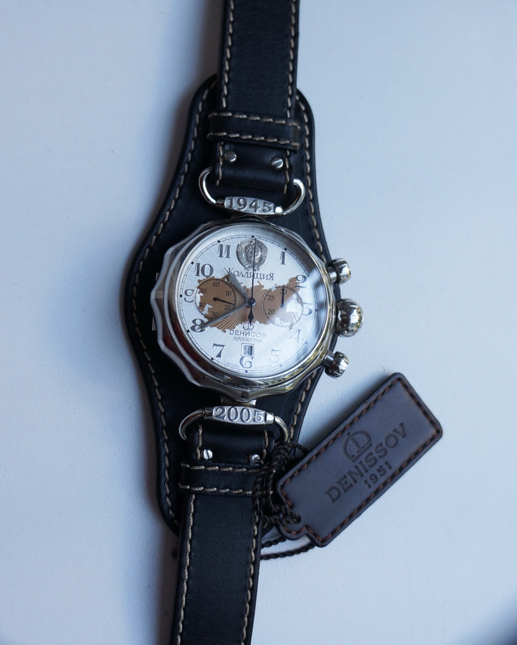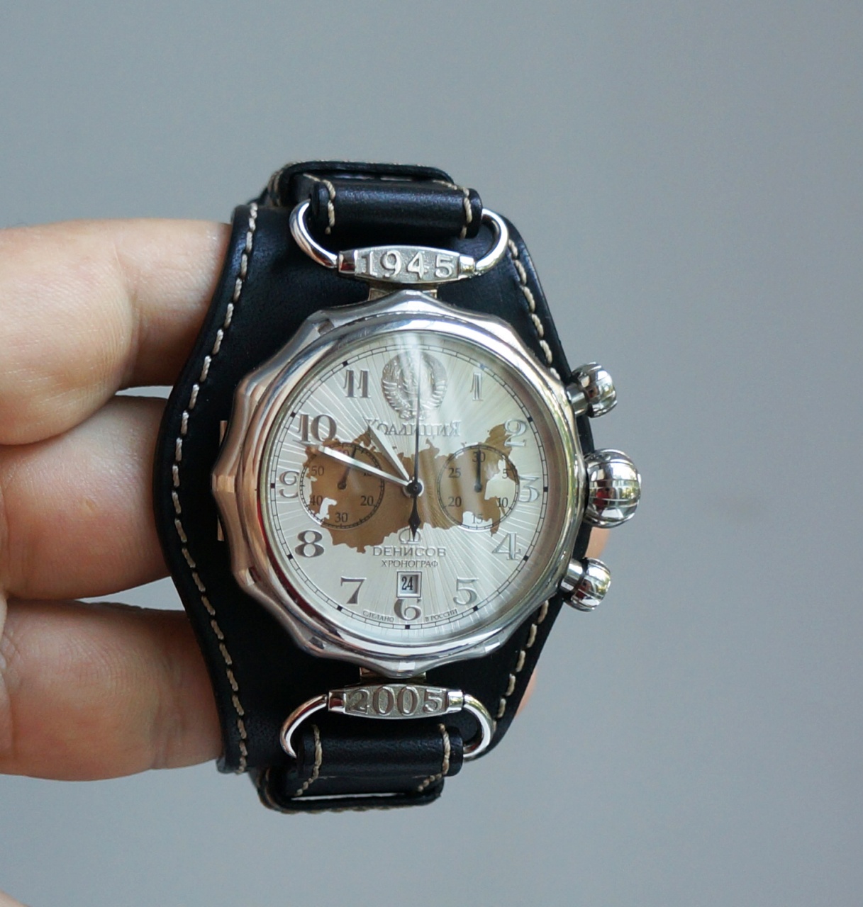 Часы носились мало. Защитную пленку со стекла механизма и изображения Сталина не снимали. Поэтому лик вождя блестит и переливается серебром)) Никаких утрат и царапин, хороший сохран. Ремешок чуть б.у. Коробки и доков нет, только бирка.