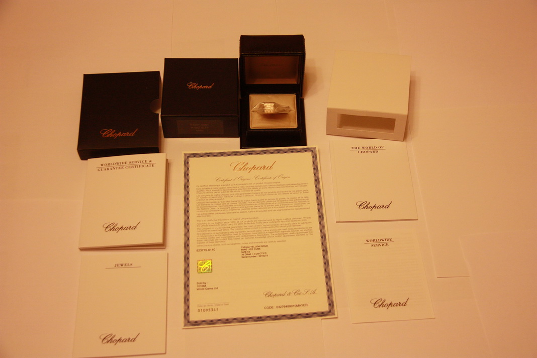 Комплект: кольцо (запечатанное в заводской пластик), коробка, шкатулка, сертификат, 2 брошюры, список гарантийных центров.