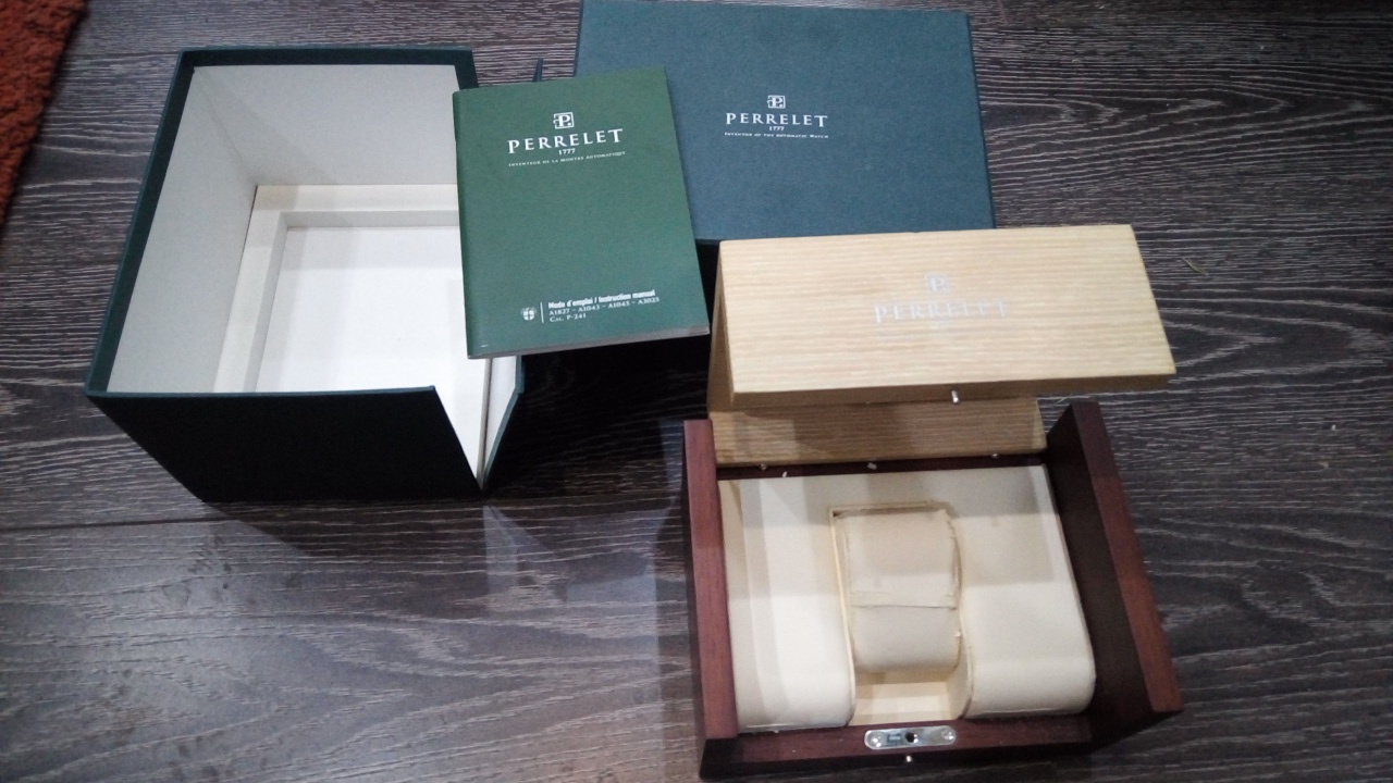 Perrelet split seconds chronograph А1043. Красивые, притягивающие взгляд часы с мануфактурным механизмом. Рекомендованная стоимость 13 000 уе. В 2016 проходили обслуживание и мастер рукожоп сломал диск с датой (он сапфировый). На работу никак не влияет, внешний вид не портит. Диаметр 43.5мм. Каучук на крупную руку. секундомер, дата (была) )),минутный накопитель и сплит-хронограф (пропуск в высшую лигу). Корпус выполнен из стали. Безель и задняя крышка-керамика. Сзади сапфировое стекло.Остальные характеристики легко найти в инете по модели. В цену уже заложен ремонт(репассаж). такие же бу на Chrono24 - 327 тыс. В комплекте коробка и инструкция.