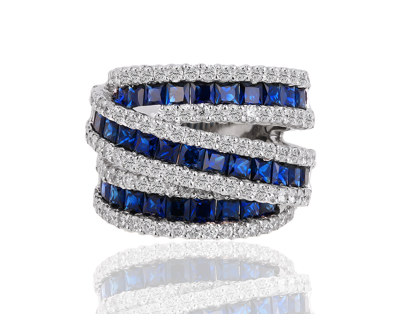 Золотое кольцо с бриллиантами 1.95ct и сапфирами 3.71ct