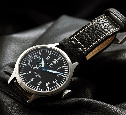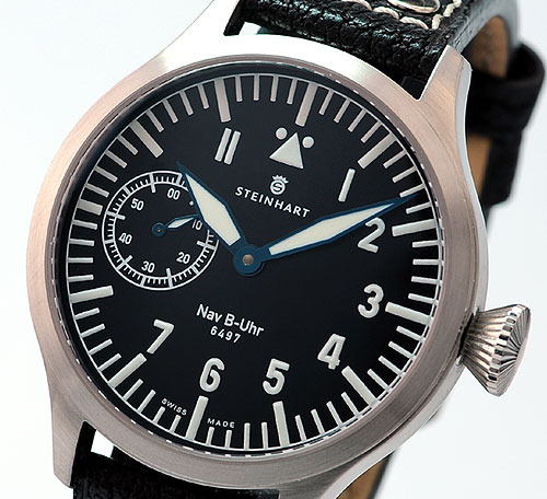 Продаю абсолютно новые (в пленках, с упаковкой и документами) часы STEINHART \\\"Nav B-watch stainless steel\\\" Art.Nr. 010306 stainles в Москву привезены 07.10. 2010 Ни разу не одевались Очень красивые и стильные Детали конструкции: Механические без автоподзавода Швейцарский механизм Unitas 6498, 17 камней Все цифры и стрелки светящиеся - белые/голубые Корпус - нержавеющая сталь (матовый) Циферблат черный, матовый Диаметр 47 мм Толщина 14,3 мм Вес 128 г Стекло сапфировое с антибликовым покрытием Водонепроницаемость 3Атм/30м Ремень кожаный, толстый, мягкий Ширина ремня 22мм, толщина 4мм Застежка массивная матовая стальная с логотипом фирмы-изготовителя