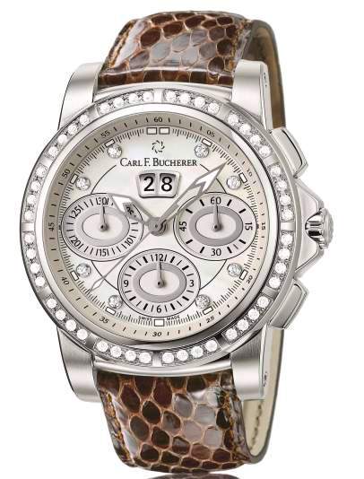 Дизайн новой модели Patravi ChronoDate Ladies, от часовой компании Carl F. Bucherer, выполнен в спортивно-классическом стиле. Овальные счетчики хронографа и безель, инкрустированный бриллиантами, подчеркивают женственность модели.